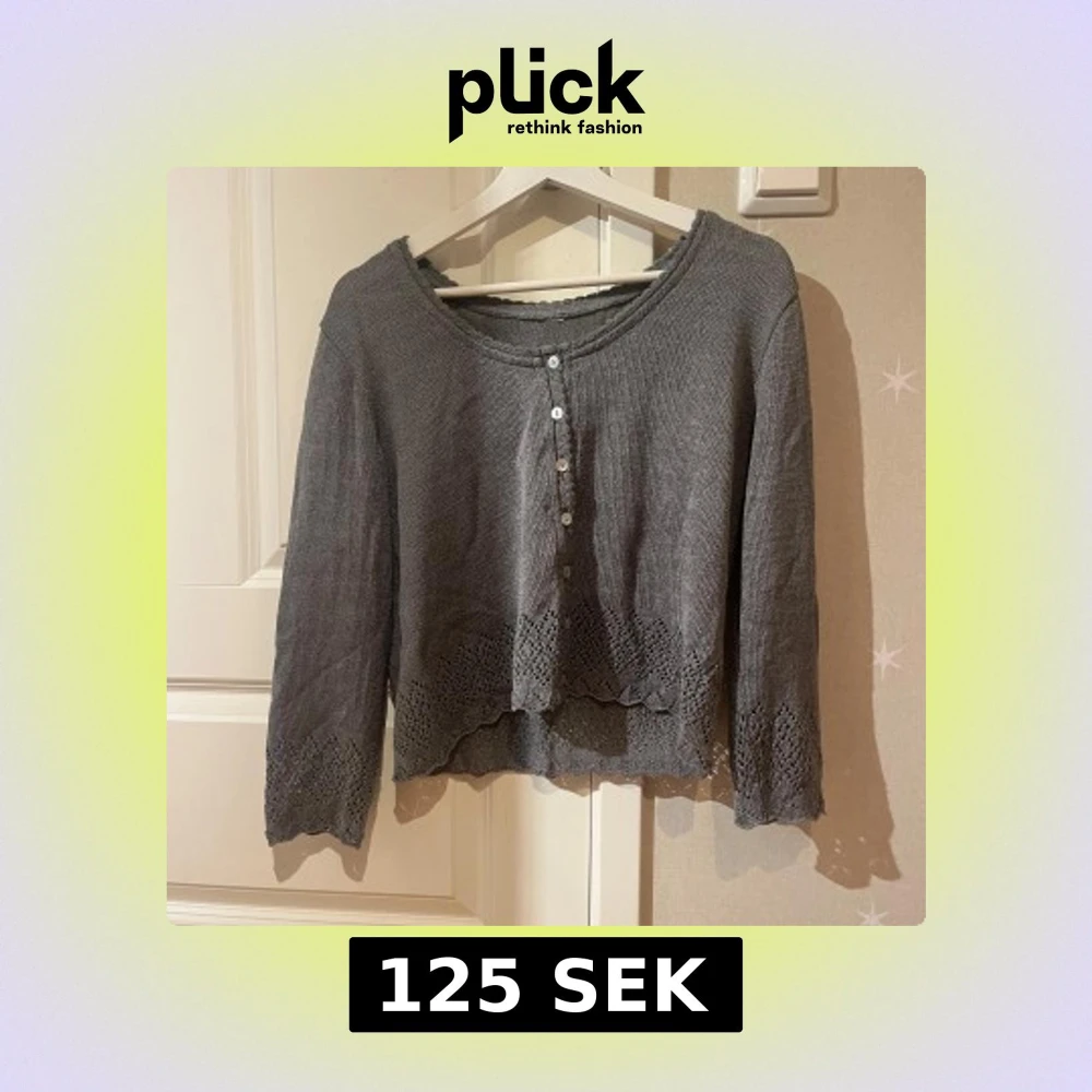 Supersöt grå stickad kofta med fina spetsdetaljer längs nederkant och ärmslut. Koftan har rund halsringning, långa ärmar och knappar framtill. Perfekt att slänga över en topp för en chill och stilren look.