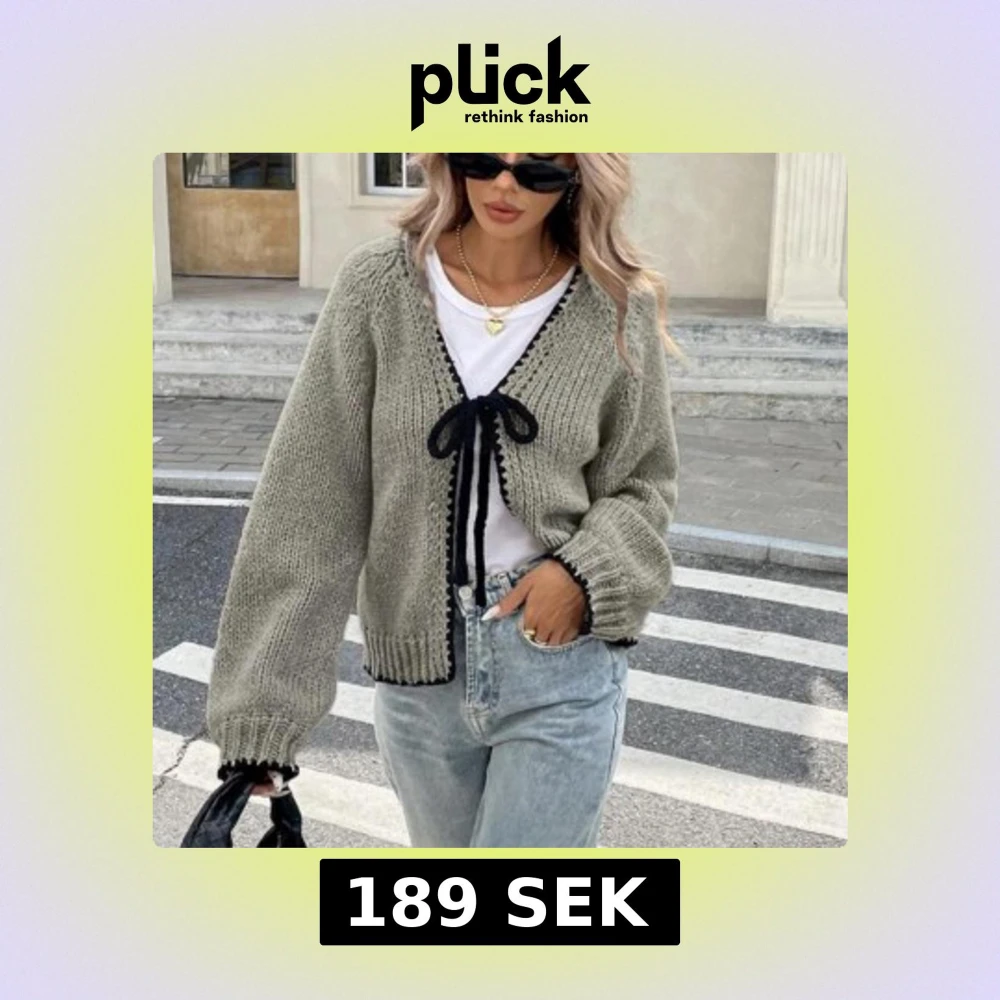 Superfin grå stickad kofta med svarta detaljer och knytband framtill. Köpte nyligen men är för liten. Säljer i storlek M men passar även en S. Pris kan alltid diskuteras 🫶🏼