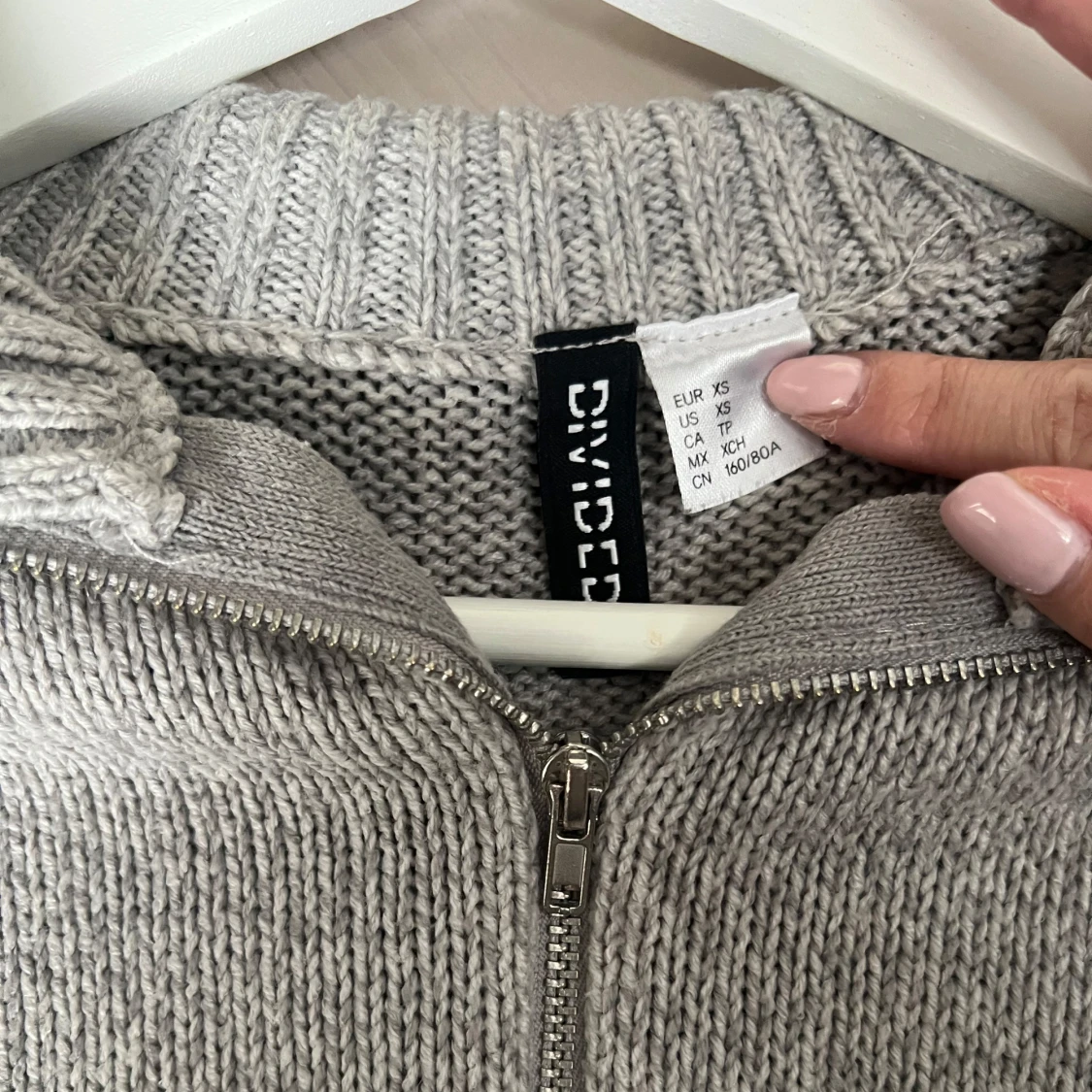 Snygg grå stickad kofta från Divided i XS🩶Koftan har dragkedja och är lite croppad i modellen. Supersnygg att ha vitt linne under till jeans eller kostymbyxor🌸Fint skick!