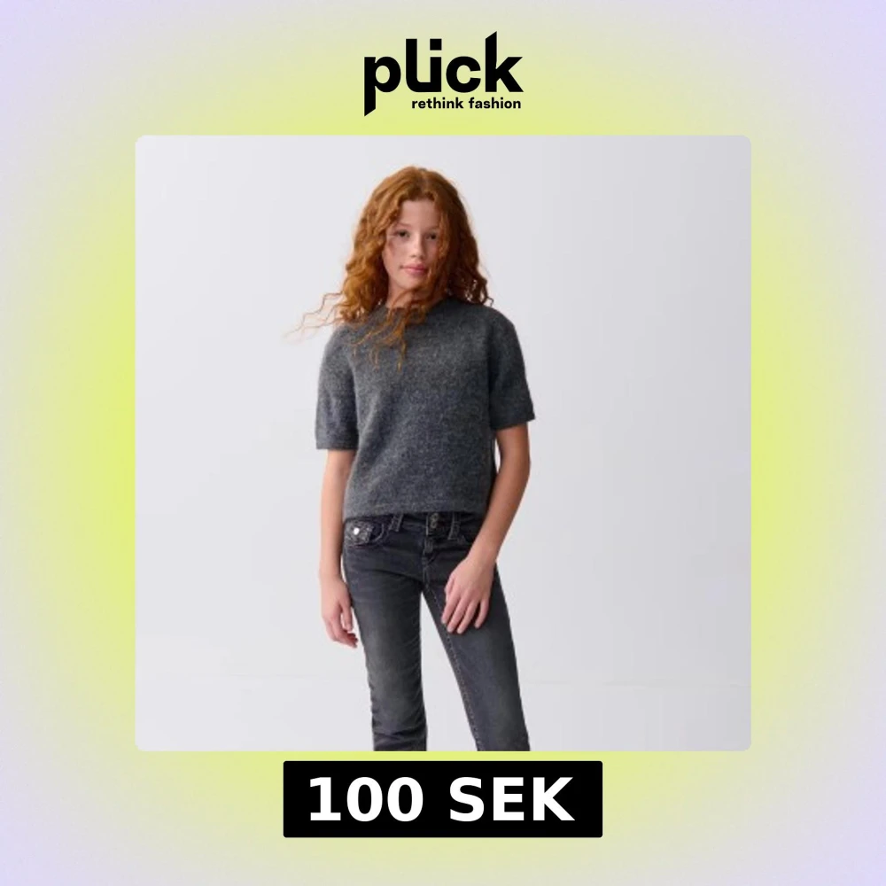 Säljer en mysig grå stickad tröja från Gina Tricot Young. använd endast 1 gång. Tröjan har korta ärmar och en rund halsringning. Perfekt för kyligare dagar. Passar bra till jeans eller kjol för en avslappnad look. Tröjan är enbart testad men säljer för den är för liten. Skulle uppskatta tröjan till 158-164.