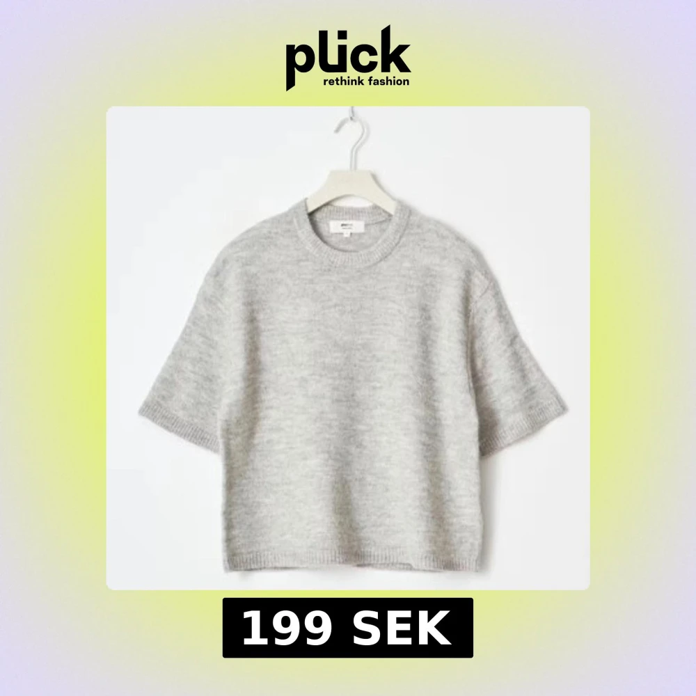 Säljer en ljusgrå stickad tröja från Arket med korta ärmar och rund hals. Tröjan har en loose passform och är gjord i mjuk ullblandning, perfekt för lager på lager under höst och vår. Enkel och stilren design som funkar till allt.