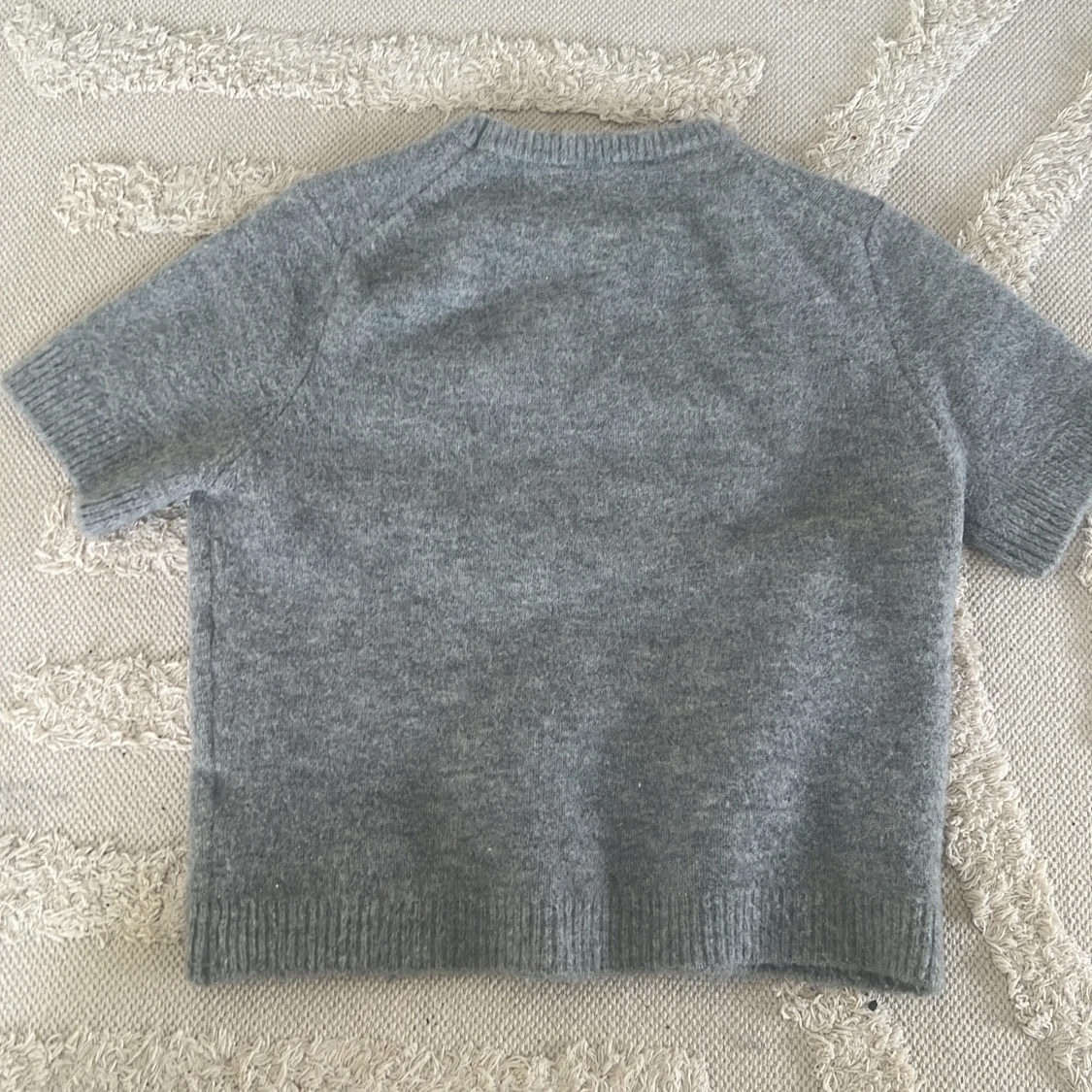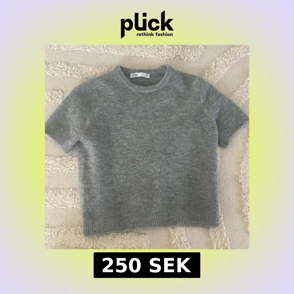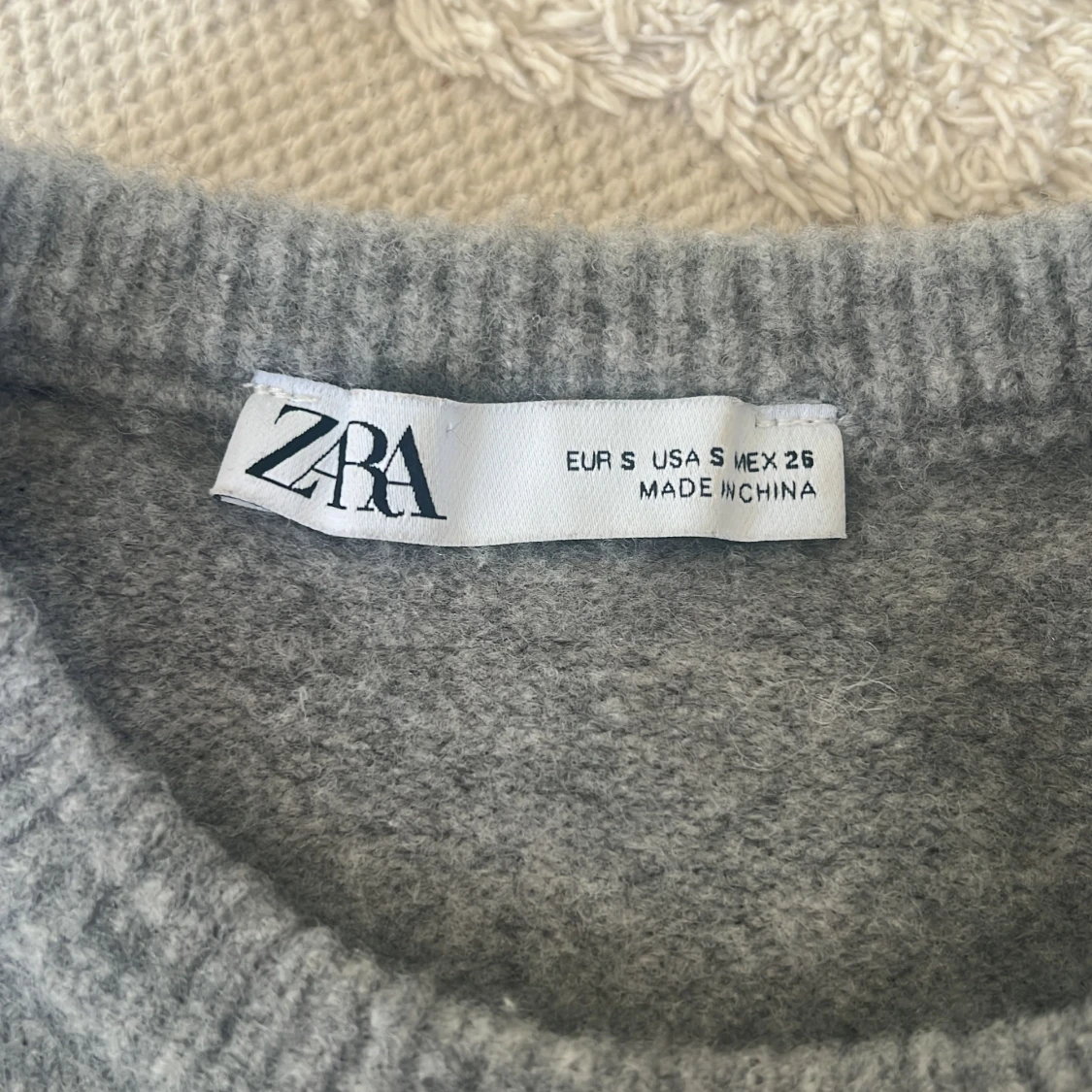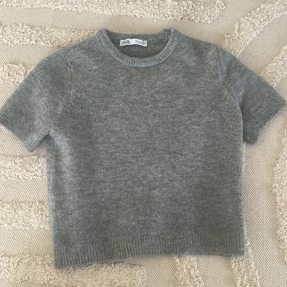 Mysig grå stickad tröja från Zara i kortärmad modell. Tröjan har rund halsringning och ribbade kanter vid ärmslut och nederkant.