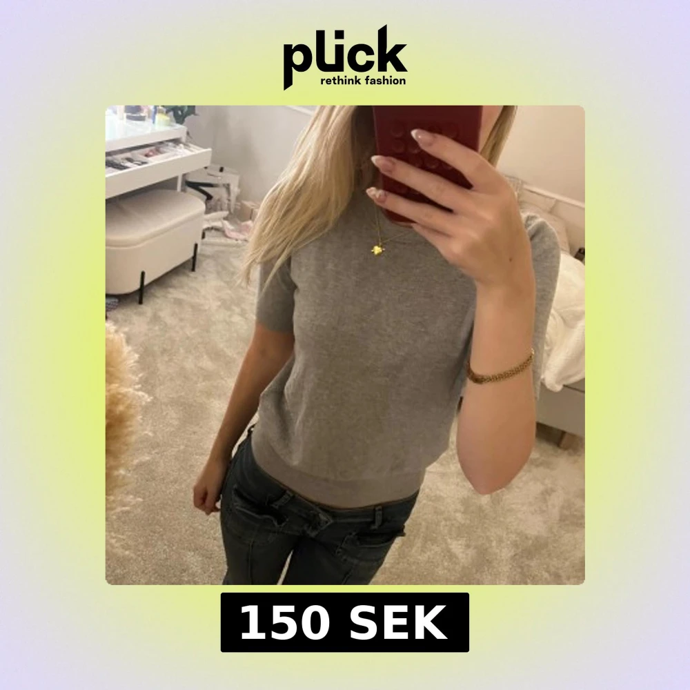 Grå stickad kortärmad tröja
