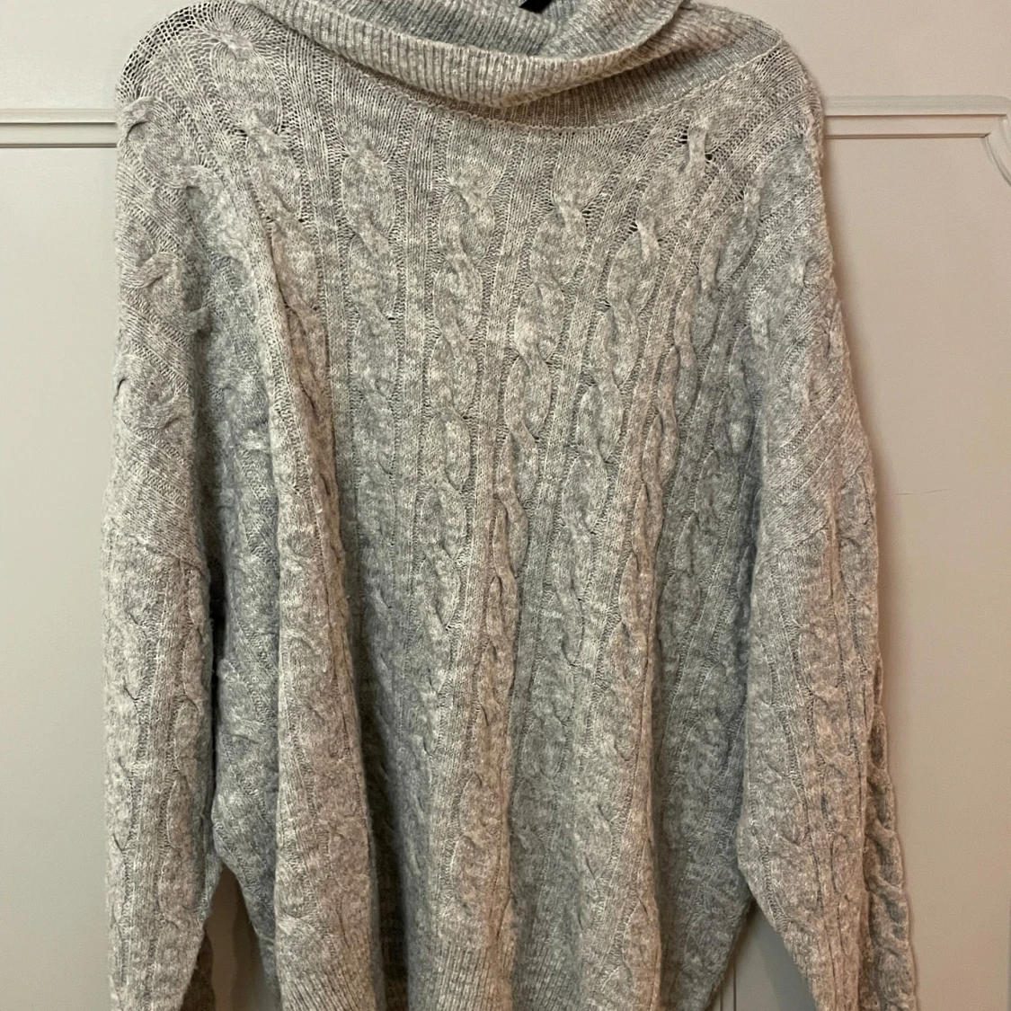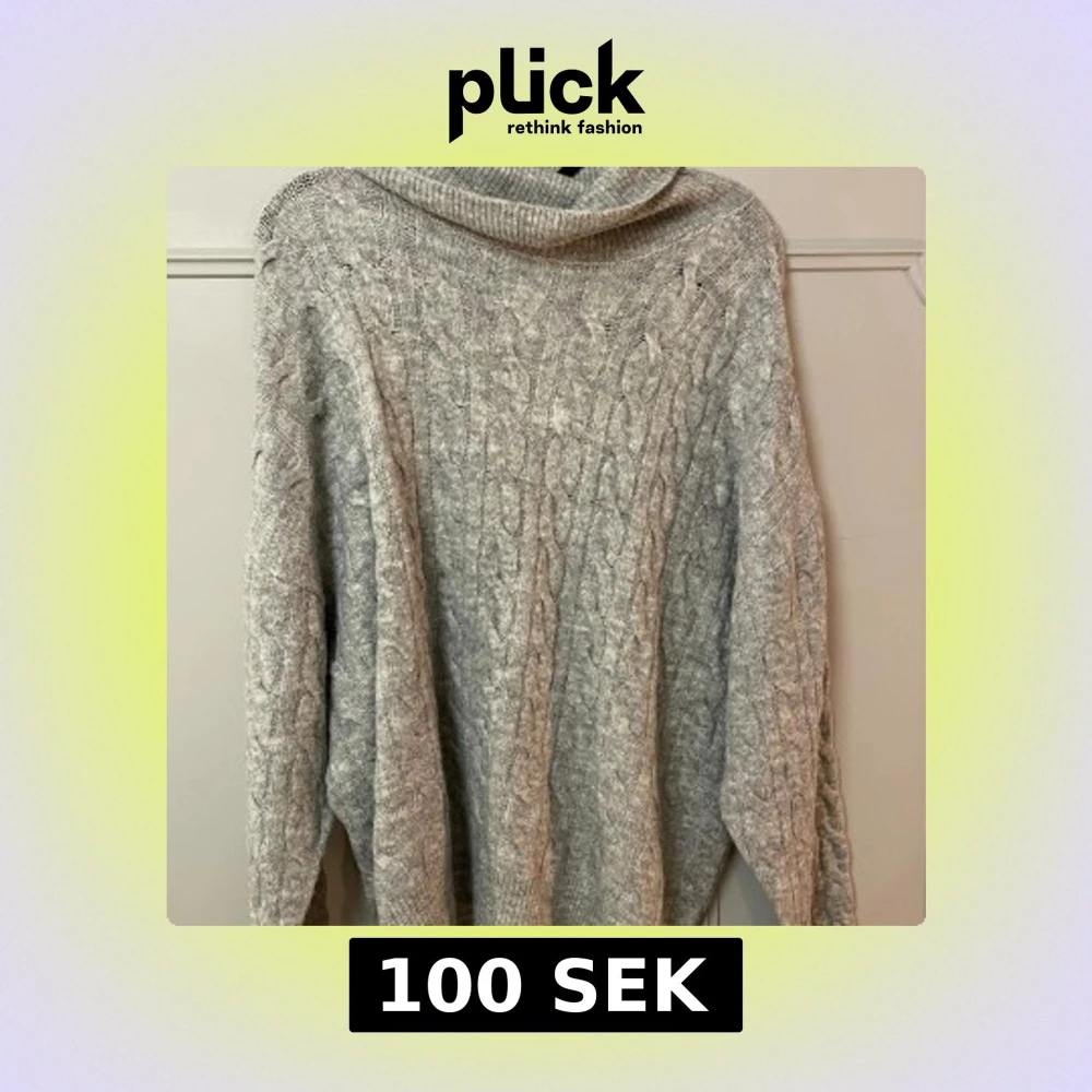 Mysig grå stickad polotröja med kabelstickat mönster. Använd fåtal gånger