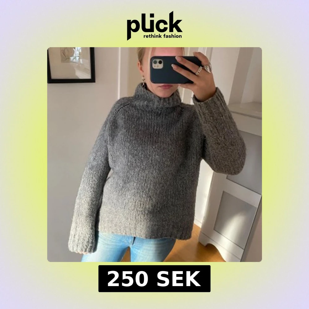 Mysig grå stickad polotröja perfekt för kyliga dagar. Den har en hög krage och långa ärmar som håller dig varm och bekväm. Tröjan är i mycket bra skick och passar perfekt till både jeans och kjol. Perfekt för höst och vinter!