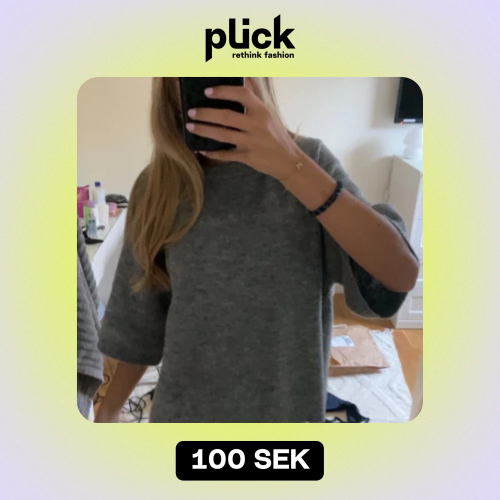 Säljer en mysig grå stickad tröja med trekvartsärm. Perfekt för kyliga dagar och passar till det mesta i garderoben. Tröjan har en lös passform som gör den superbekväm att bära. Perfekt för höst och vinter!