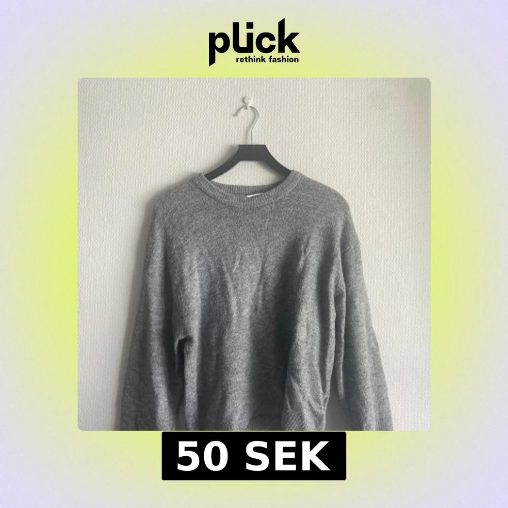 En grå stickad tröja med rund halsringning och långa ärmar. Köpt på lager 157
