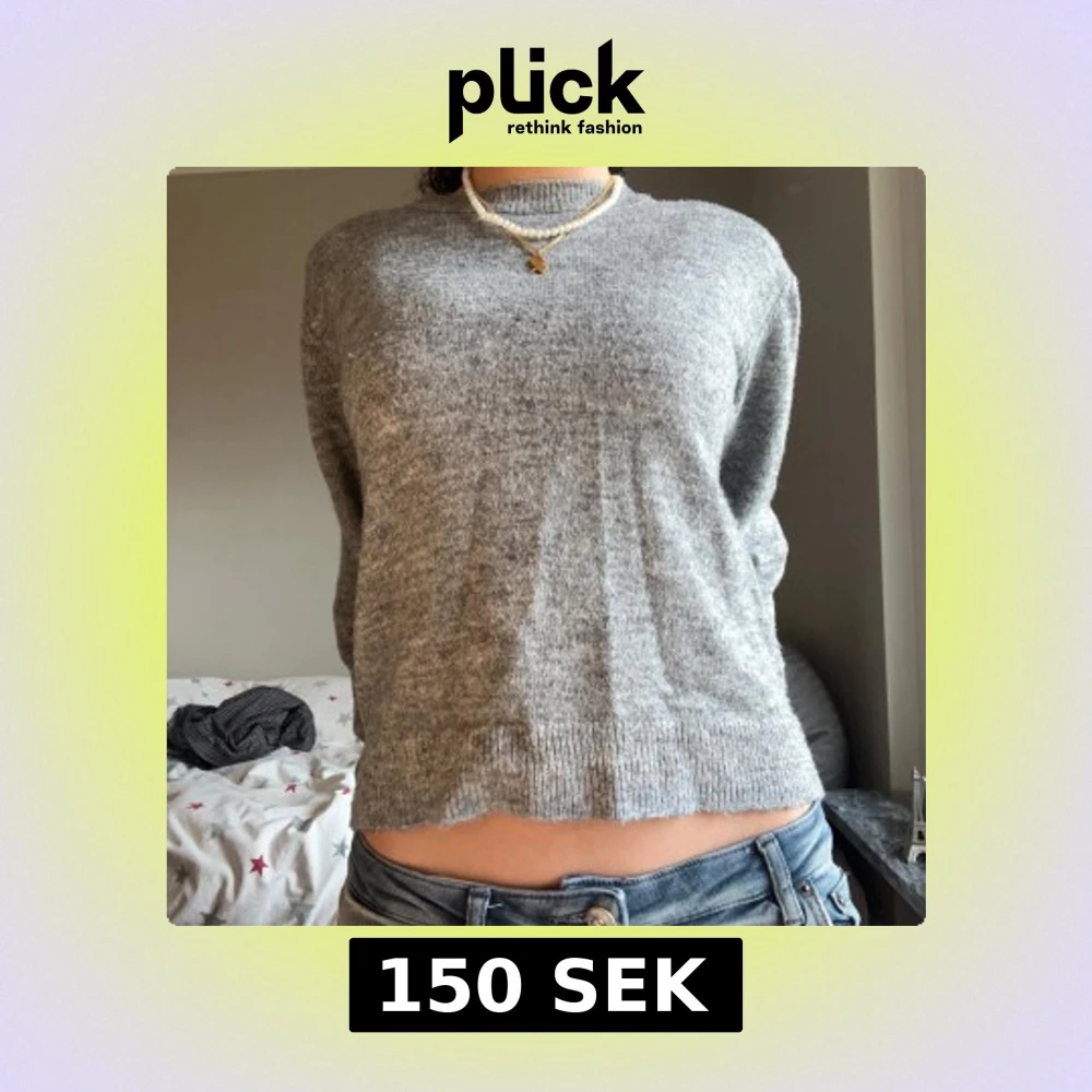Säljer en mysig grå stickad tröja med ribbad nederkant. Perfekt för kyligare dagar och lätt att matcha med olika outfits. Storlek M men sitter fint på S och xs