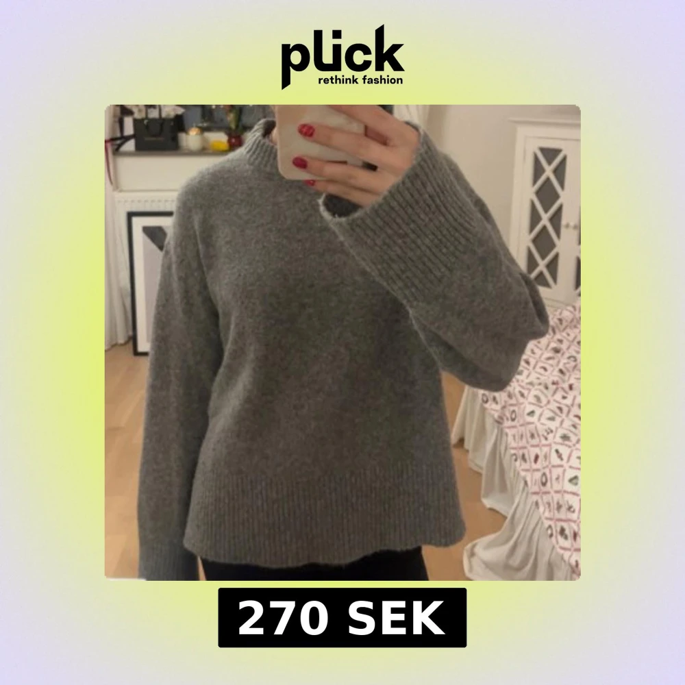 Mysig grå stickad tröja med långa ärmar och ribbade detaljer. Inget tecken på användning🥰pris kan diskuteras