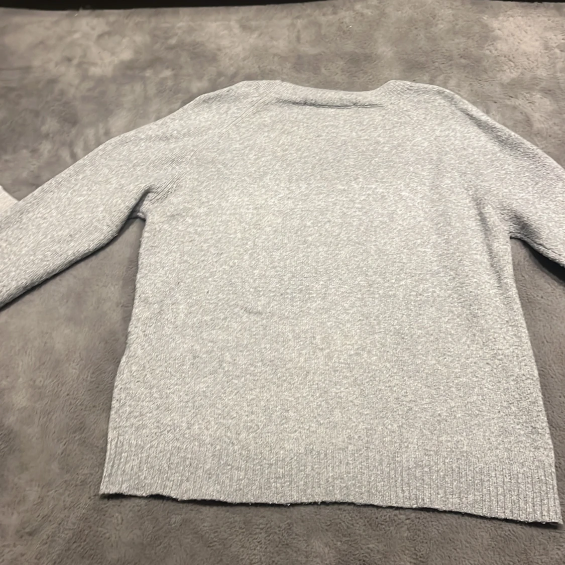 Säljer en stilren grå stickad tröja från H&M. Tröjan har en klassisk rund hals och långa ärmar. Perfekt för kyligare dagar. Passar bra till både jeans och kjol.