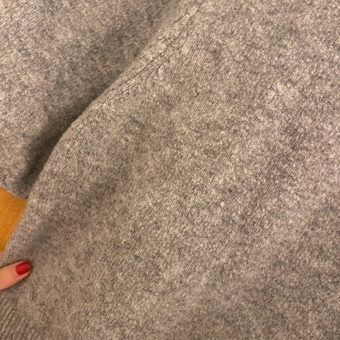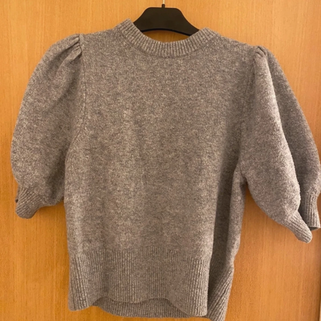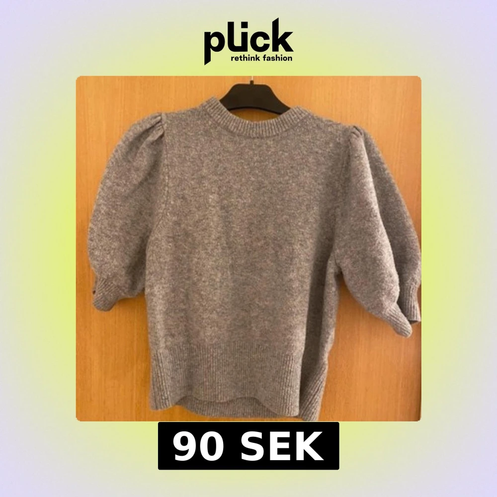 Mysig grå stickad tröja med puffiga trekvartsärmar och ribbade detaljer vid ärmslut och nederkant. Lite nopprig men annars fint skick, Storlek 175 men skulle säga att det är en xs, vid frågor kom privat❤️