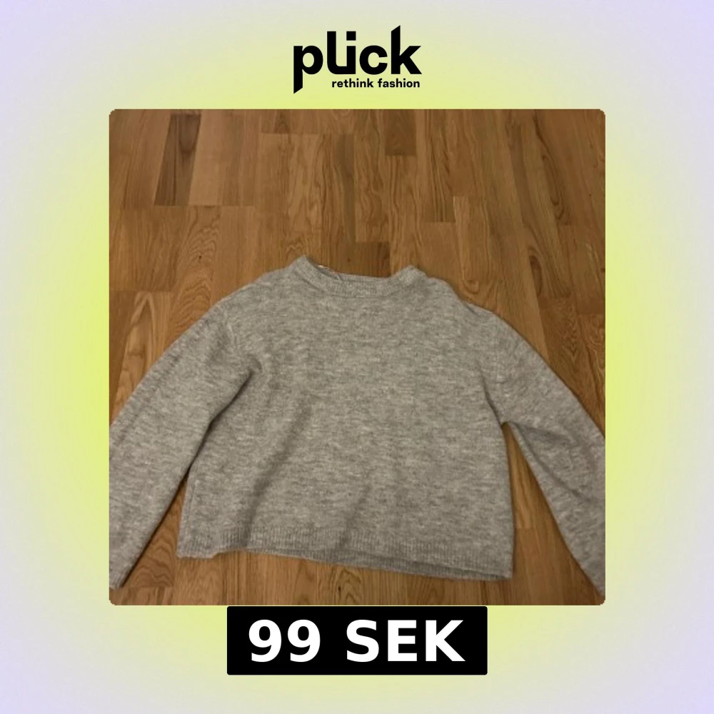 Säljer en stilren grå stickad tröja med normal passform. Tröjan har långa ärmar och en rund halsringning, perfekt för kyligare dagar. Enkel och tidlös design som passar till det mesta.