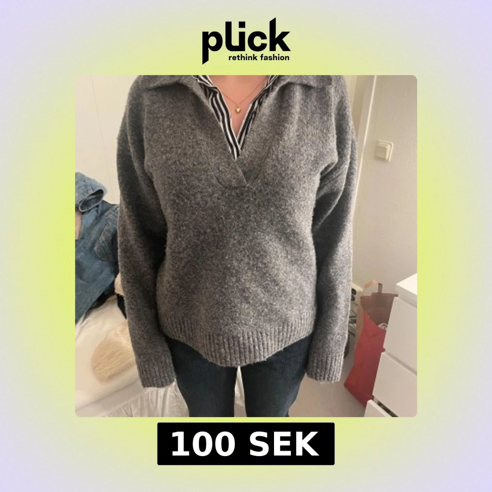 Mysig grå stickad tröja med v-ringning och långa ärmar. Helt oanvänd