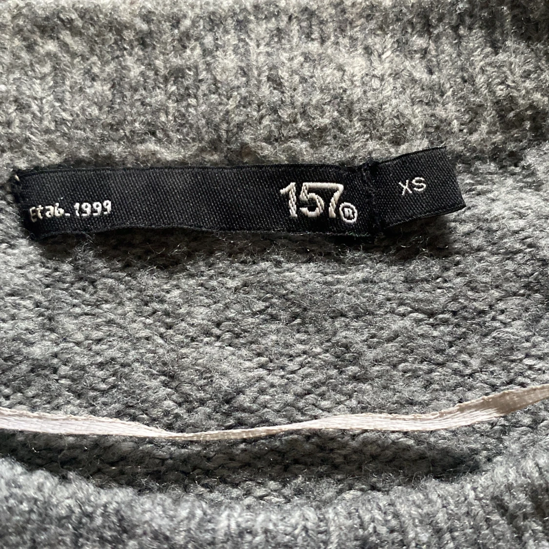 Mysig grå stickad tröja från 157 i storlek XS. Tröjan har en klassisk rund halsringning och långa ärmar. Perfekt för lager-på-lager och chill dagar. Enkel och stilren design som funkar till det mesta.