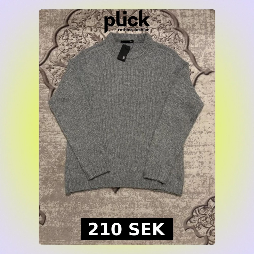 Snygg grå stickad tröja från 157 med ribbad krage och muddar. Tröjan har en klassisk, rak passform och är perfekt för dig som gillar enkel och stilren design. Materialet är mjukt och värmande, och den har långa ärmar som gör den extra cozy. Helt ny var stor för mig! Säljer för samma pris men vid snabbäfare kan sänka.