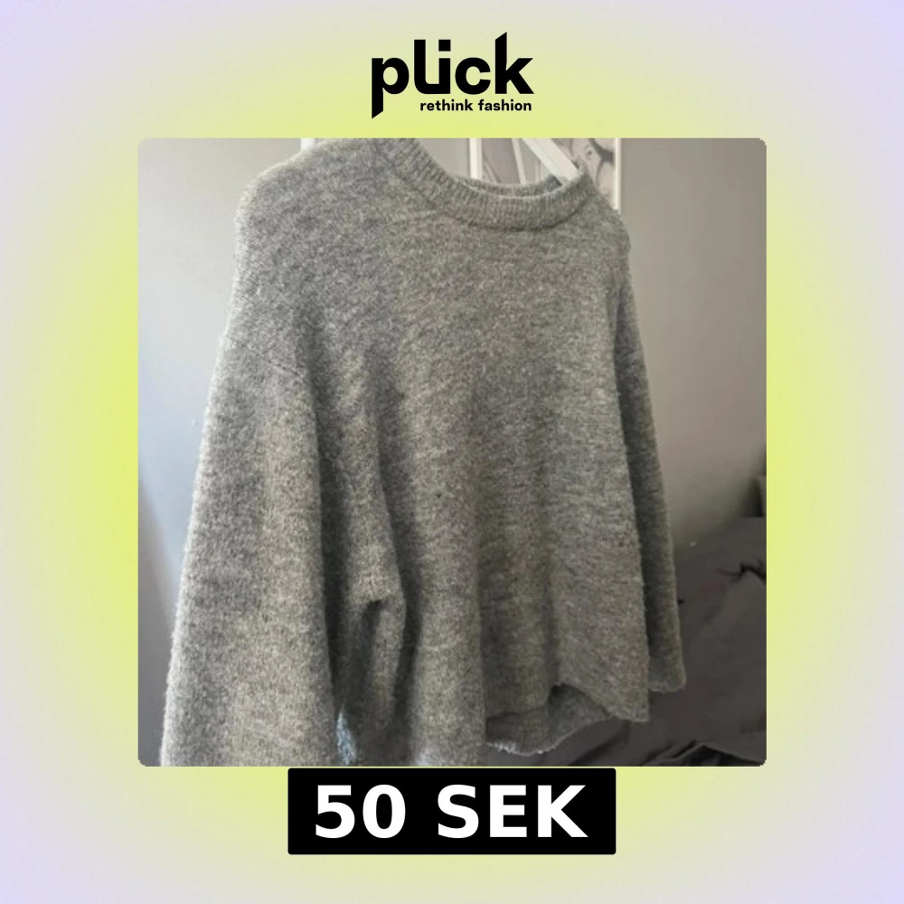 Mysig grå stickad tröja från 157 i storlek XS. Tröjan har en rundad hals med ribbad kant och långa ärmar.