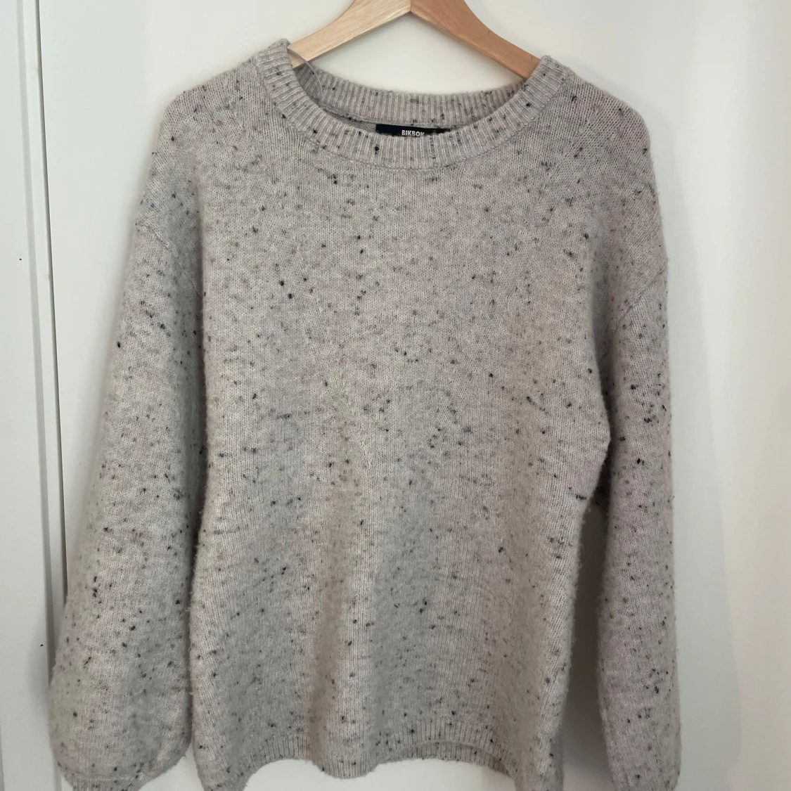 Mysig grå stickad tröja från BikBok med ett diskret melerat mönster. Perfekt för kyliga dagar med sin bekväma passform och långa ärmar. En stilren och enkel design som passar till det mesta och är väldigt höstig❤️