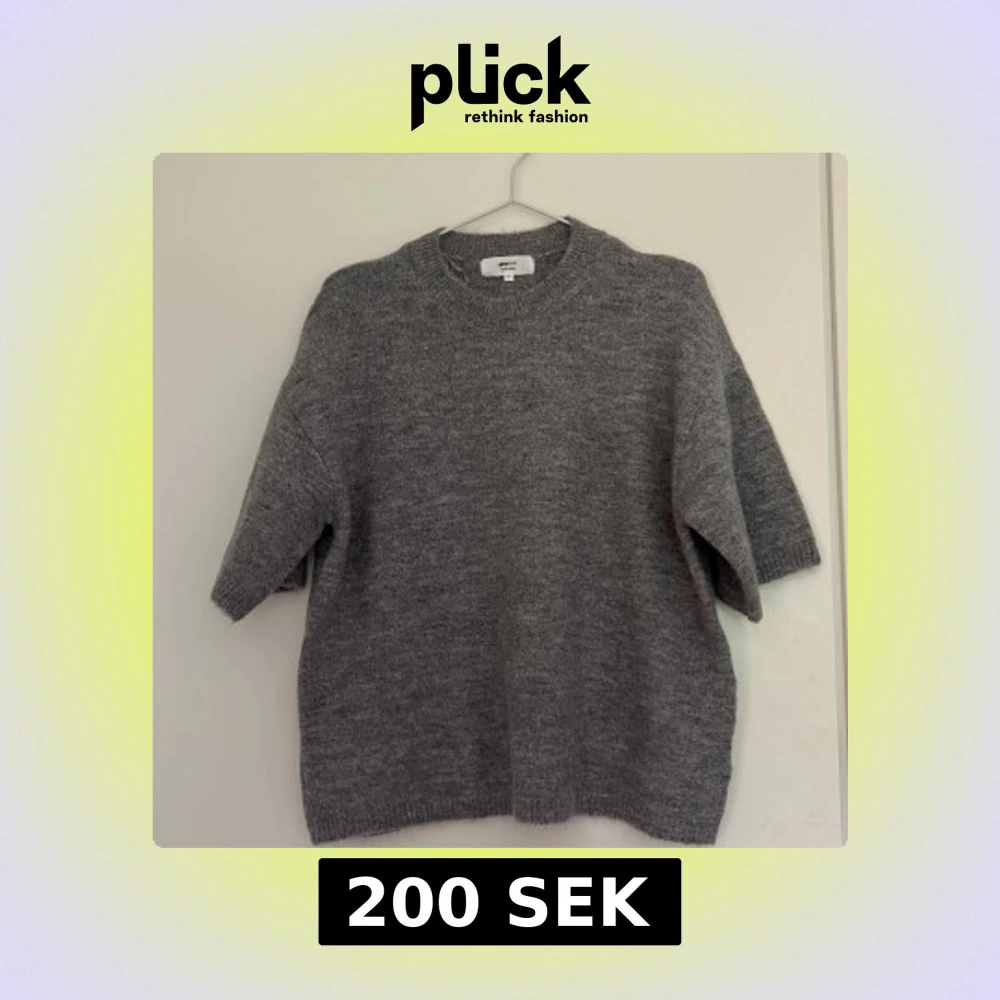 Mysig grå stickad tröja från Gina Tricot i ullblandning. Tröjan har korta ärmar, rund halsringning och en relaxed fit som passar perfekt till lager-på-lager. Enkel och stilren design som funkar till allt.