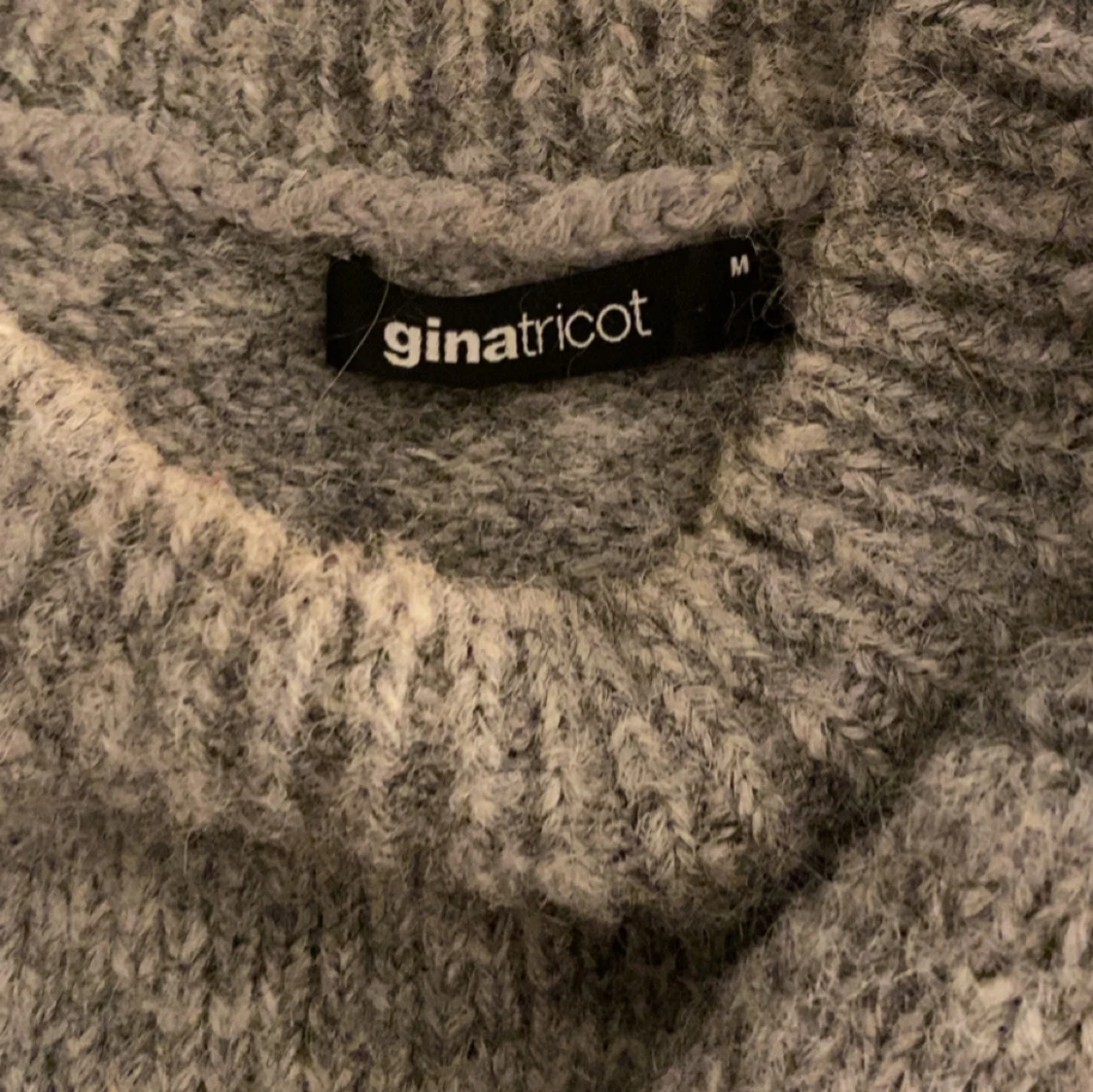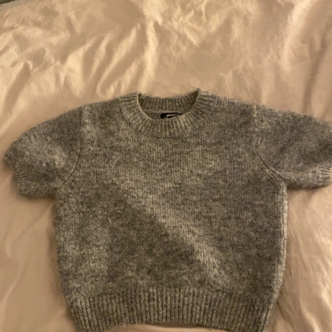 Mysig grå stickad tröja från Gina Tricot med korta ärmar och rund halsringning. Tröjan har en klassisk, enkel design och är perfekt för lager-på-lager-stil under kyligare dagar.