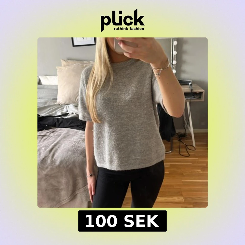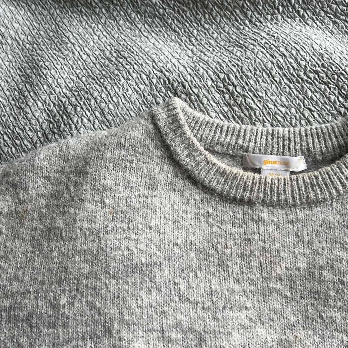 Mysig grå stickad tröja från Gina i storlek 158/164💕lite smink på halsen men går bort i tvätten