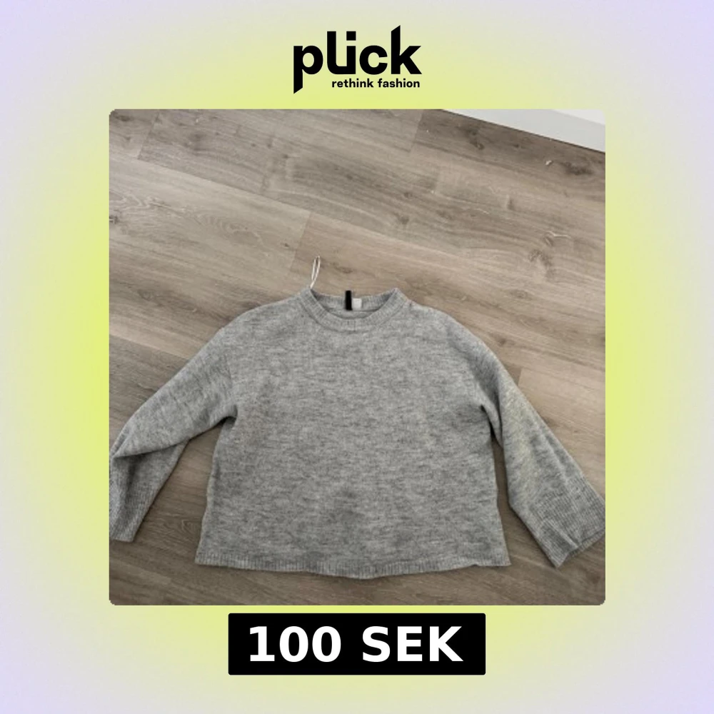Säljer en mysig grå stickad tröja från H&M Divided. Tröjan har en klassisk design med långa ärmar och ribbstickad krage. Storlek L, för en overzise känsla.