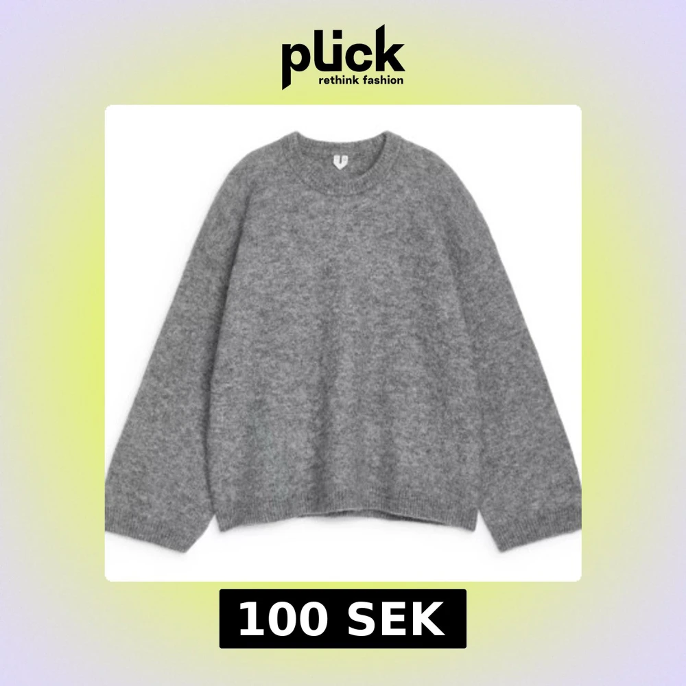 Mysig grå stickad tröja från & Hm med rund halsringning och avslappnad passform. Tröjan har långa ärmar och ribbade muddar vid ärmslut och nederkant. Perfekt att slänga på sig när det är kyligt ute. Använd tröja men i bra skick, lite nopprig men inte mycket