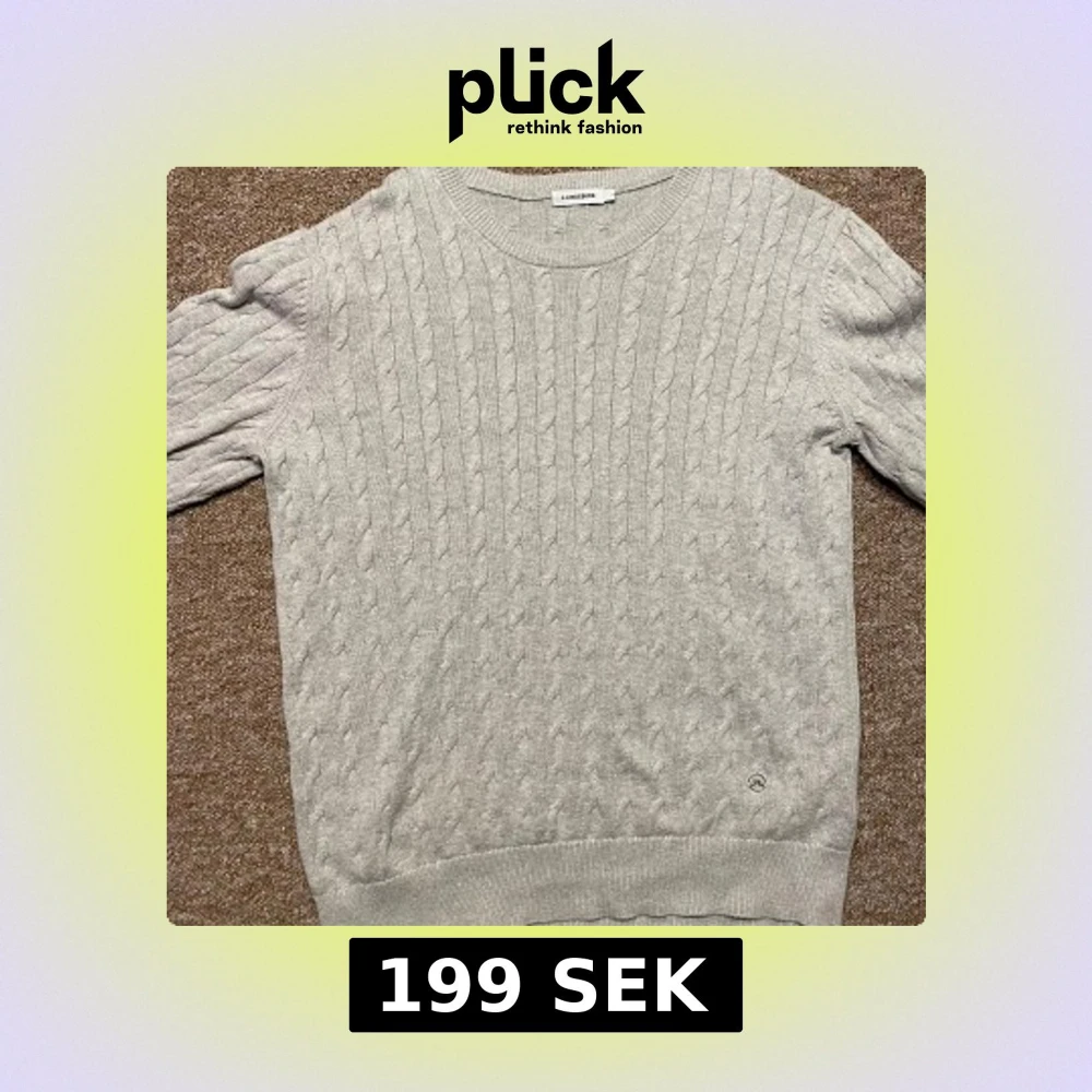 Säljer en stilren grå stickad tröja från j.lindebeeg med kabelstickat mönster. Tröjan har rund hals och långa ärmar, perfekt för kyligare dagar. Så god som ny använt fåtals gånger