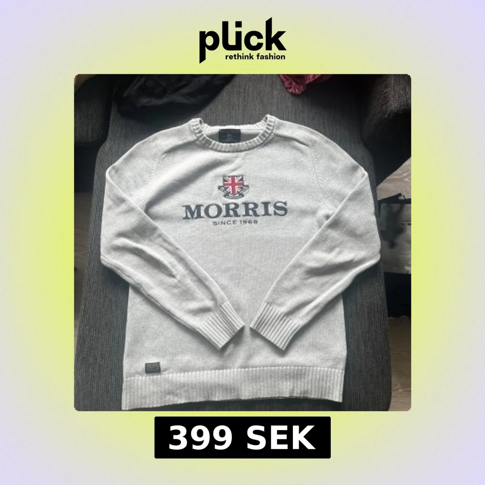 Snygg grå stickad tröja från Morris med broderad logga och brittisk flagga på bröstet. Tröjan har rund halsringning, ribbade muddar och nederkant samt lång ärm. Perfekt för dig som gillar klassisk och stilren design. Nypris ca 1100kr-1300kr