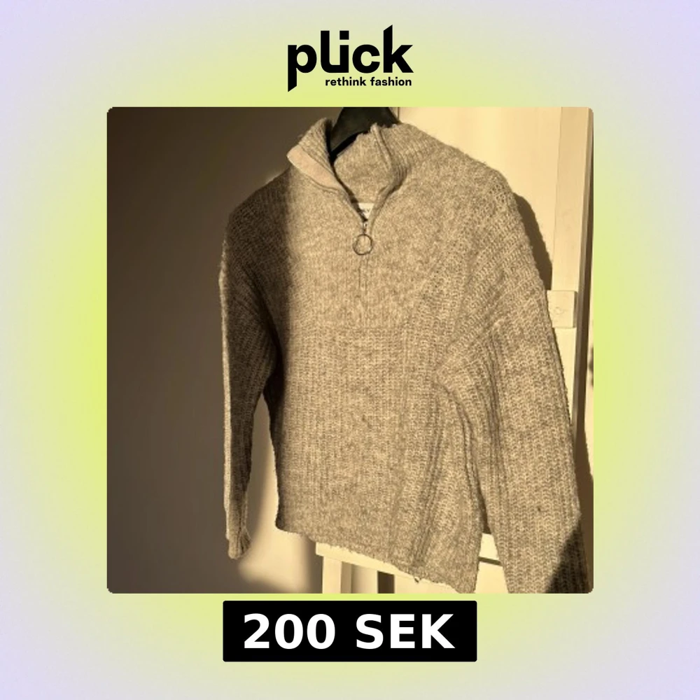 Säljer en mysig grå stickad tröja från ONLY med dragkedja och hög krage. Perfekt för kyliga dagar. Tröjan har långa ärmar och en avslappnad passform. Passar bra till både jeans och kjol.