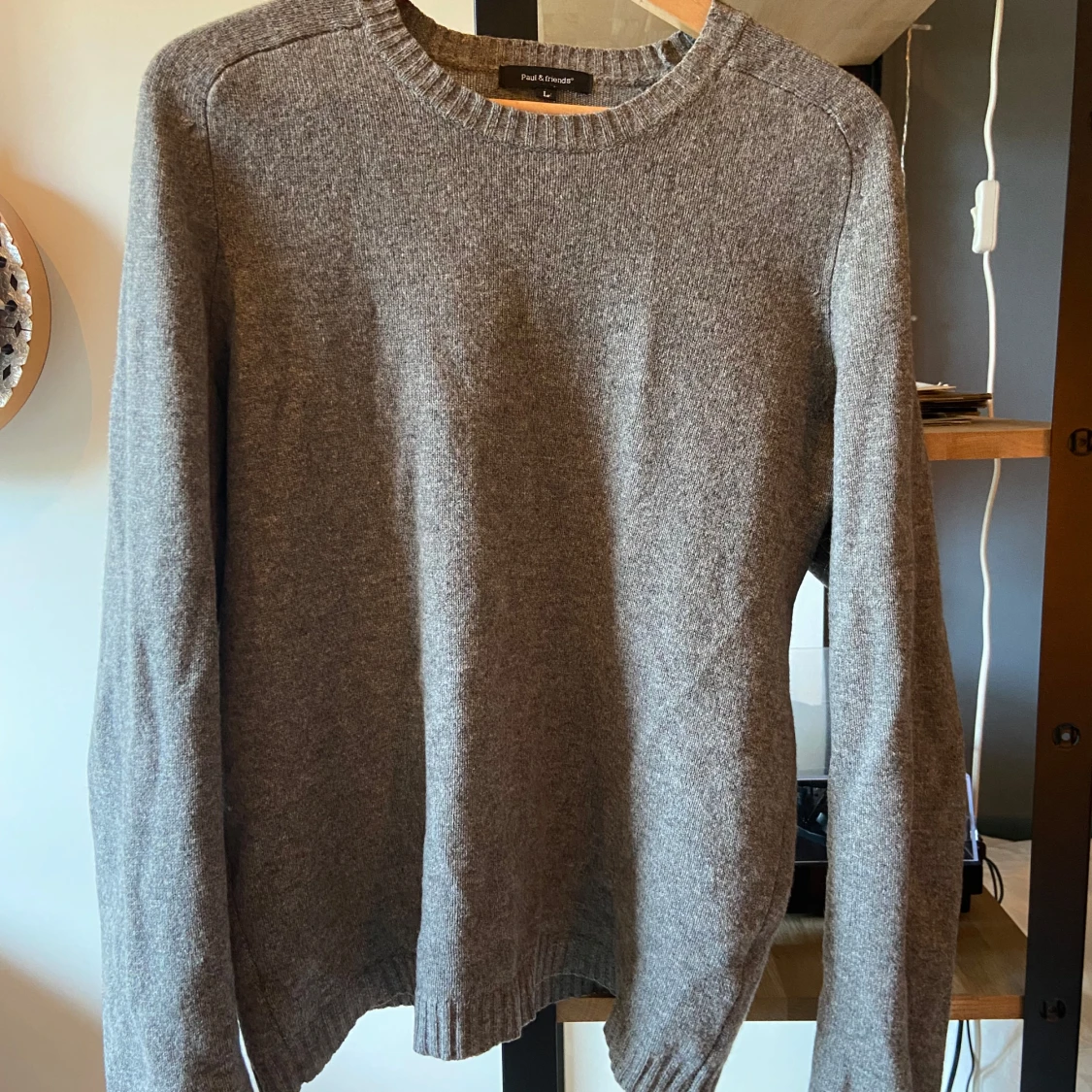 En klassisk grå stickad tröja från Paul & Friends i storlek L. Tröjan har rund halsringning, ribbade muddar och är långärmad. Perfekt för lager-på-lager och funkar till både jeans och chinos. Enkel och stilren design som passar till det mesta.