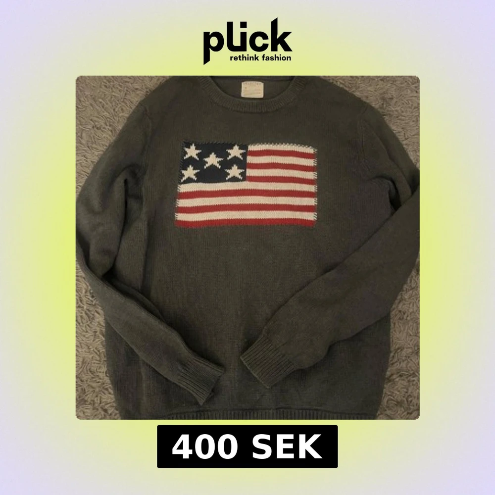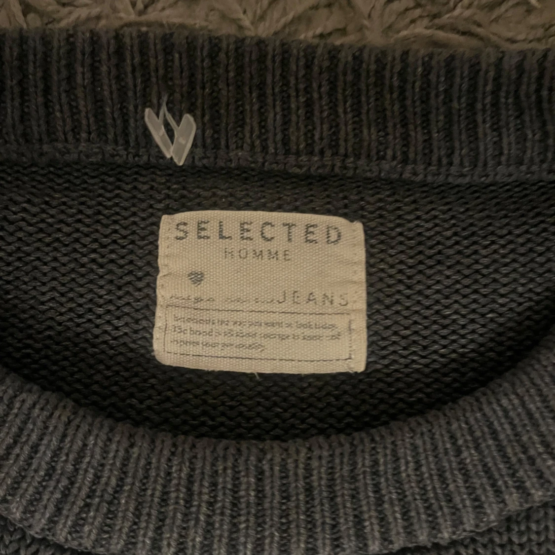 Snygg grå stickad tröja från Selected Homme med ett coolt amerikanskt flaggmotiv på framsidan. Tröjan har långa ärmar och ribbade muddar vid ärmslut och nederkant. Perfekt för en avslappnad stil. det står på tröjan att det är storlek XL men den sitter som L/M. skriv vid minsta fundering!!