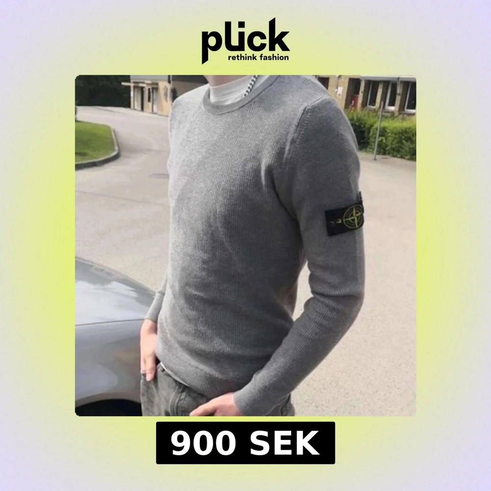 Säljer en grå stickad tröja från Stone Island med klassisk patch på vänster ärm. Tröjan har rund hals, ribbade muddar och lång ärm. Passformen är slim och materialet känns mjukt och skönt mot huden. Perfekt för dig som gillar stilrena och snygga plagg.