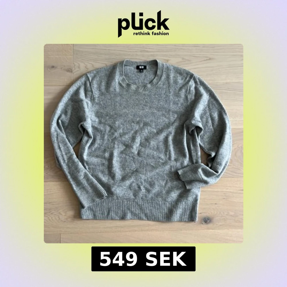 En stilren grå stickad tröja från Uniqlo i klassisk modell med rund halsringning och ribbade muddar. Perfekt för lager-på-lager och funkar till allt. Mjuk och skön känsla, passar dig som gillar enkel och clean stil. 100% kashmir