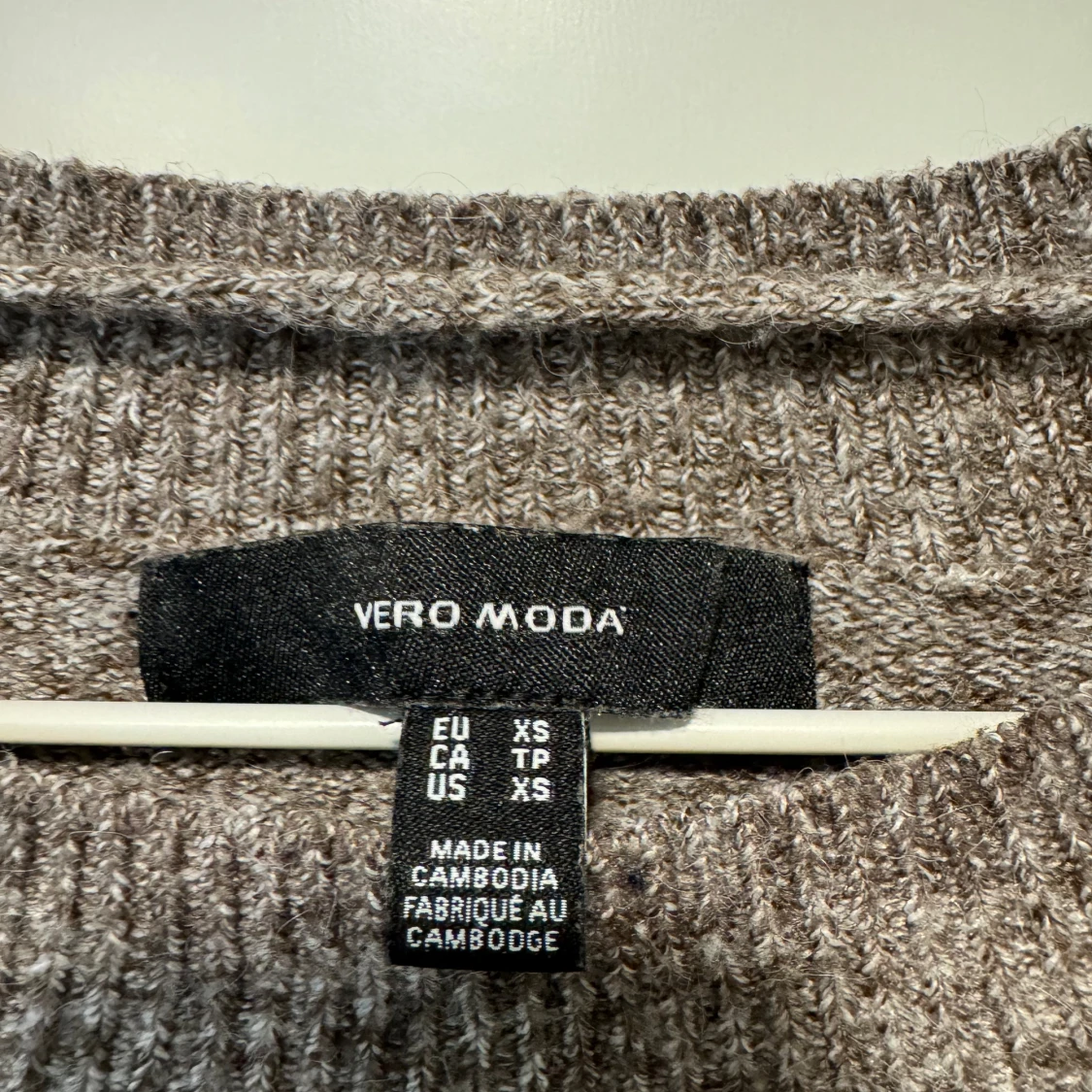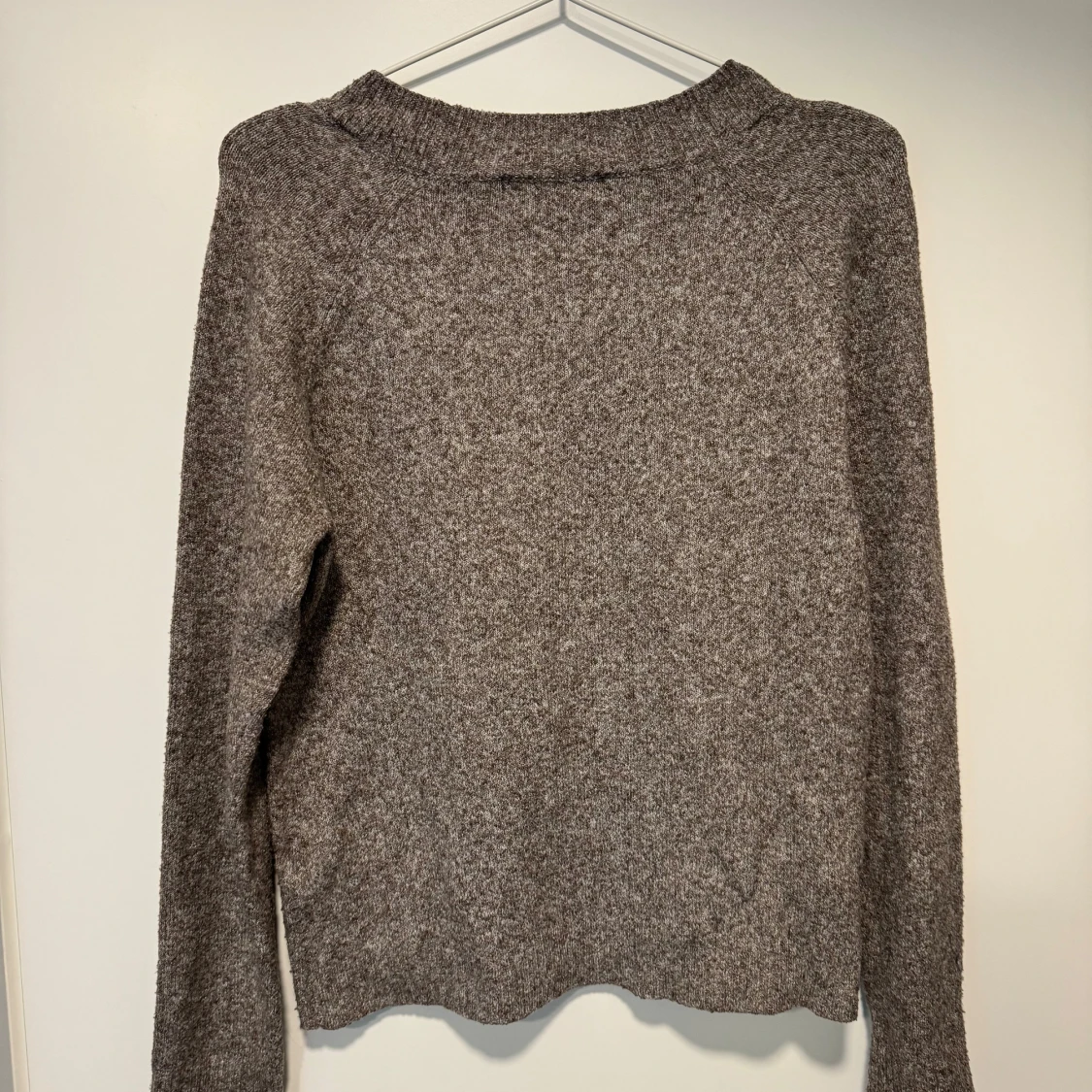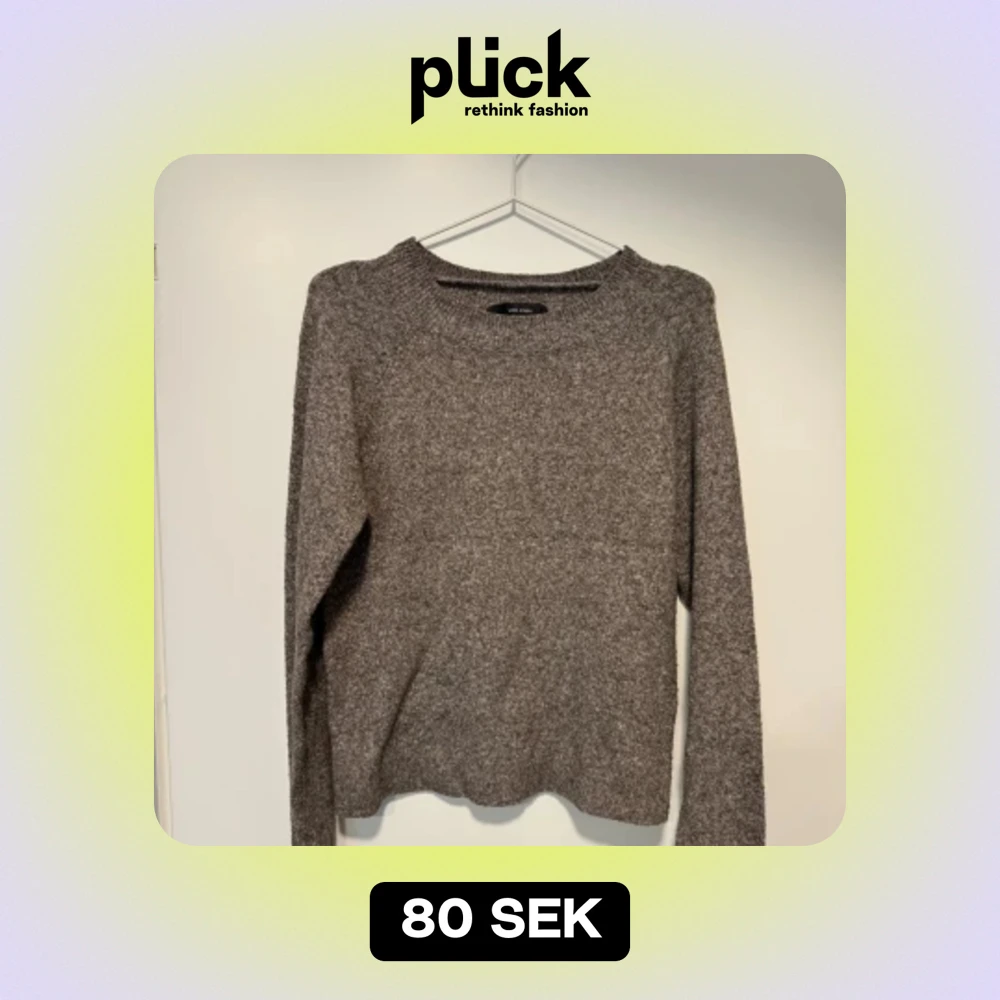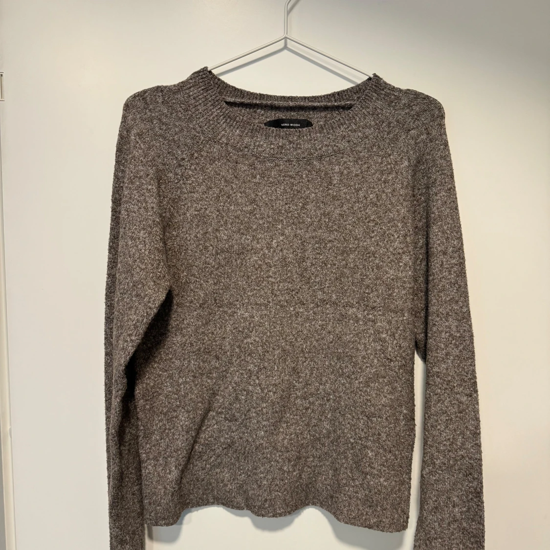 Säljer en supermysig grå-brun stickad tröja från Vero Moda. Tröjan har långa ärmar och en klassisk rund halsringning.