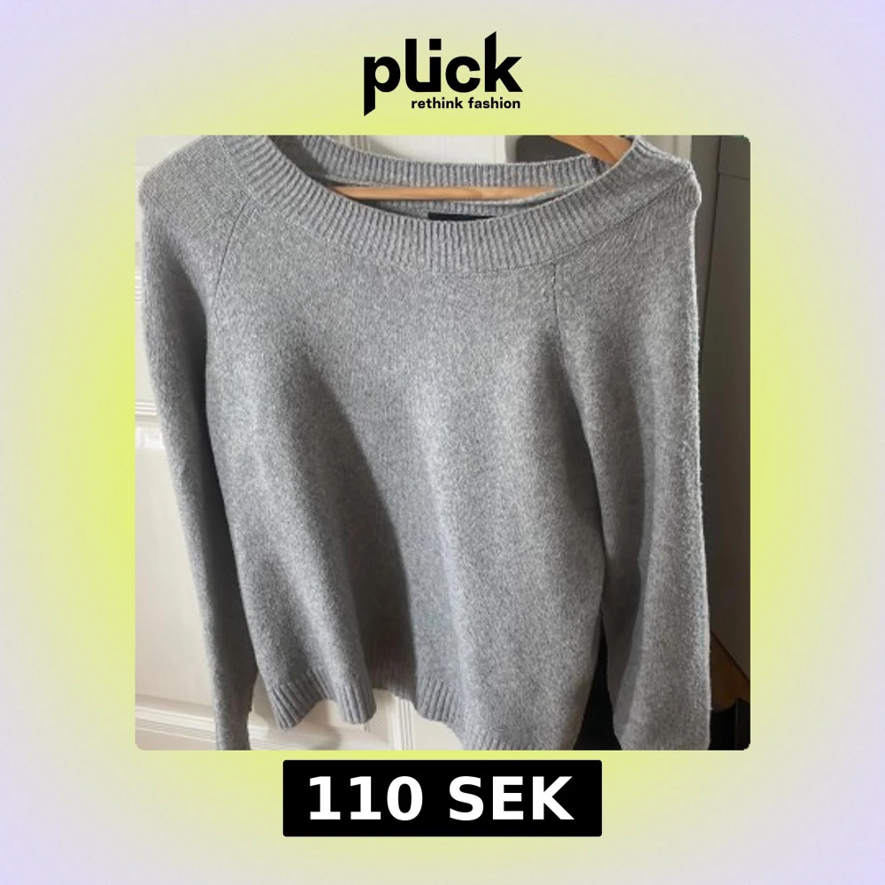 En enkel och stilren grå stickad tröja med rund halsringning och ribbade muddar. Perfekt för lager-på-lager och passar till både jeans och kjol. Långärmad och mjuk, ett måste i garderoben för kyligare dagar.
