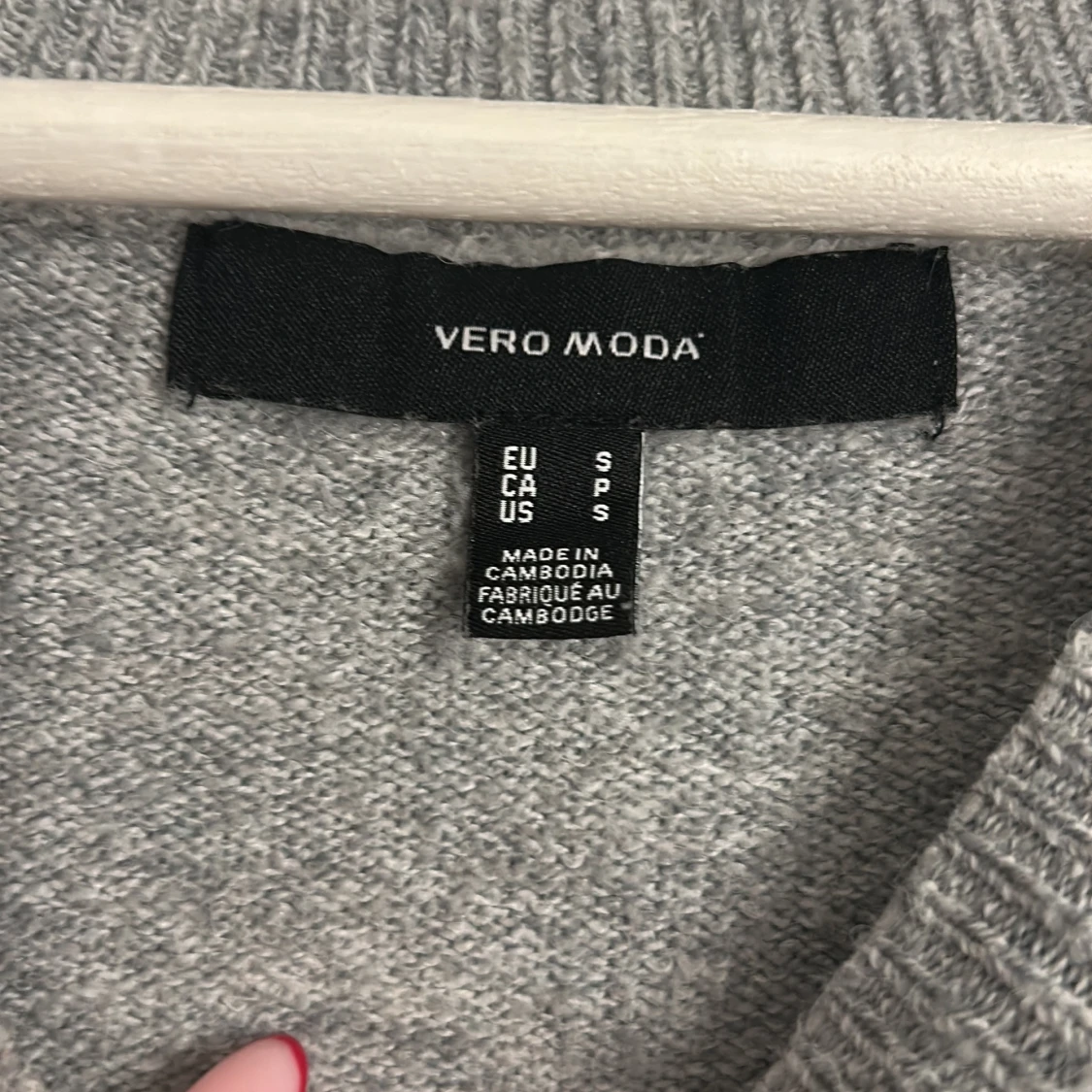 En enkel och stilren grå stickad tröja från Vero Moda. Tröjan har rund halsringning, långa ärmar och ribbade muddar vid ärmslut och nederkant. Perfekt att slänga på sig när det är kyligt ute.
