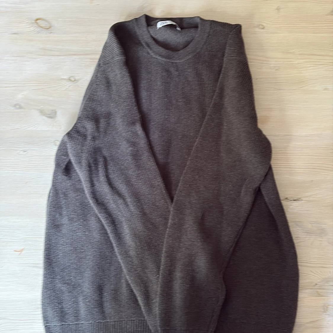 En stilren grå stickad tröja från Zara i klassisk modell med rund halsringning. Tröjan har ribbade muddar vid ärmslut och nederkant, och är perfekt för lager-på-lager. Passar dig som gillar en enkel men snygg look.