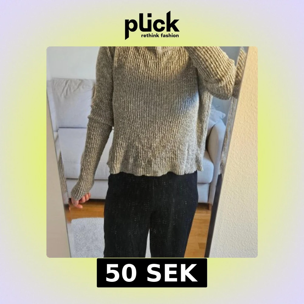 Tunn, grå stickad tröja från Hollister i storlek S. Fint stickat mönster. Litet hål längst ner på sidan, i övrigt nästan aldrig använd och väldigt fint skick.
