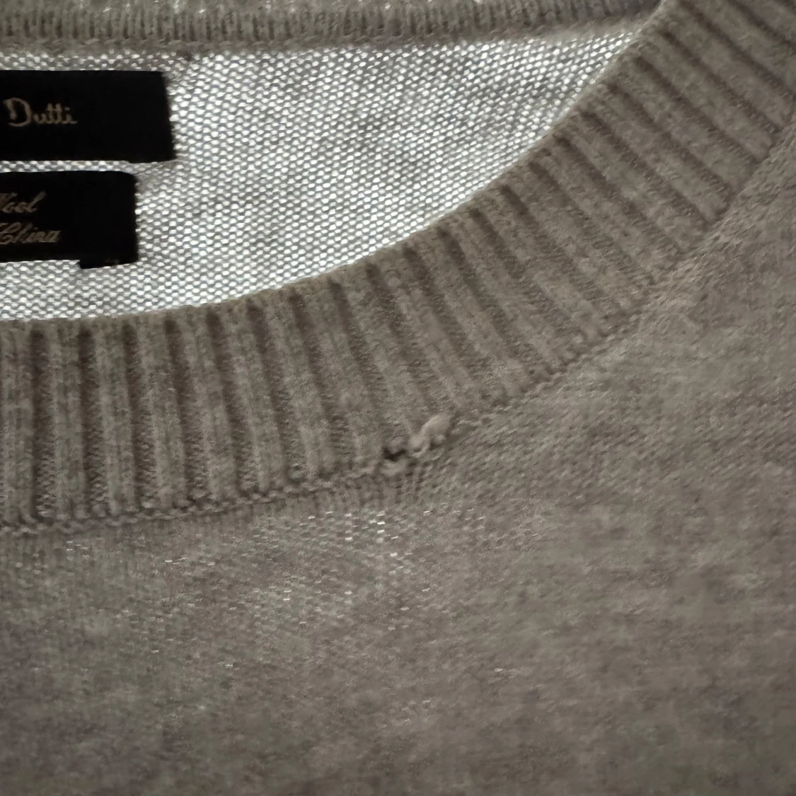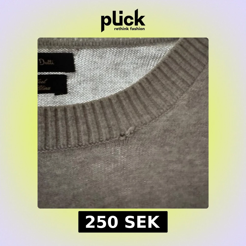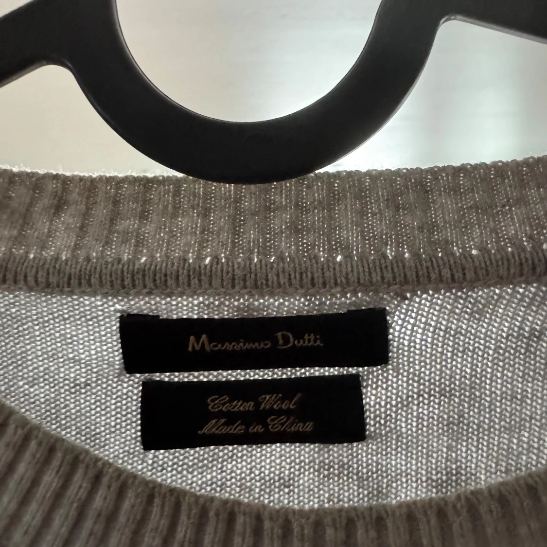Grå stickad tröja från Massimo Dutti med rund halsringning och ribbade detaljer. Tillverkad i en mjuk blandning av bomull och ull som känns skön mot huden. Perfekt för lager-på-lager under kyliga dagar.