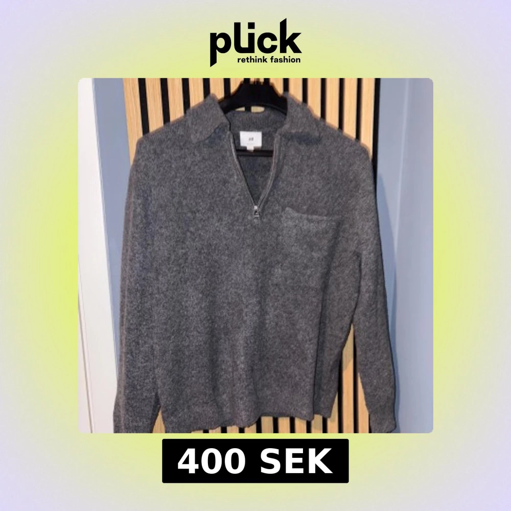 Mysig grå stickad tröja från H&M med halv dragkedja framtill och krage. Tröjan har lång ärm och en liten bröstficka. Perfekt för lager-på-lager och enkel att matcha med det mesta.