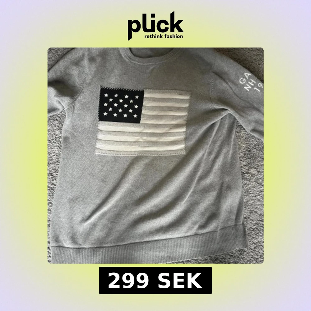 Snygg grå stickad tröja från GANT med amerikansk flagga i vitt och svart på bröstet. Rund hals och ribbade muddar. På ena ärmen finns tryck med texten 'GANT NH 1949'. Perfekt för dig som gillar klassisk college-stil. Här skrapade jag bara ihop nåra snabba bilder på en tröja som har skrotat i min garderob.