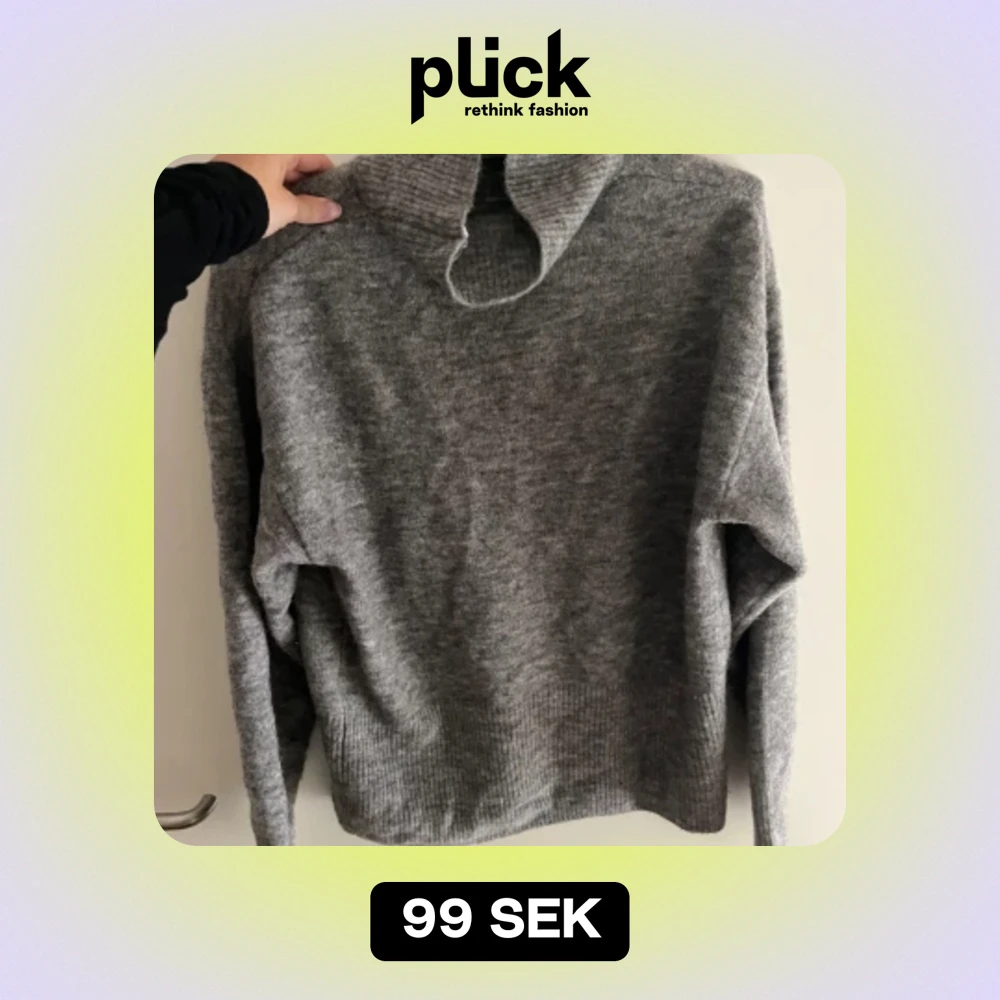 Säljer en supermysig grå stickad tröja med hög krage. Perfekt för kyliga dagar! Den har långa ärmar och en ribbad kant vid ärmslut och nederkant. Passar både till vardags och lite finare tillfällen. 🧶
