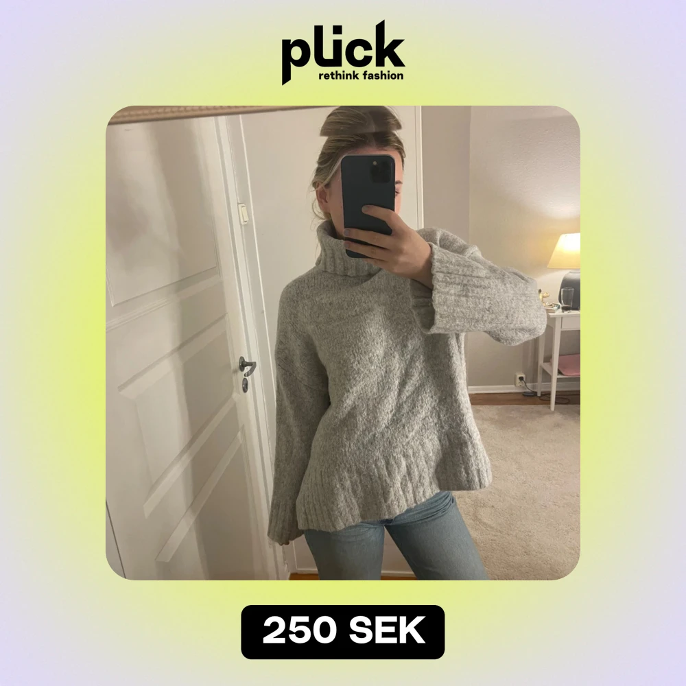 Mysig grå stickad tröja med polokrage, perfekt för kyliga dagar. Den har en loose passform och långa ärmar, vilket gör den superbekväm. Passar perfekt till jeans för en avslappnad look. Perfekt för höst och vinter! Storlek S💕💕