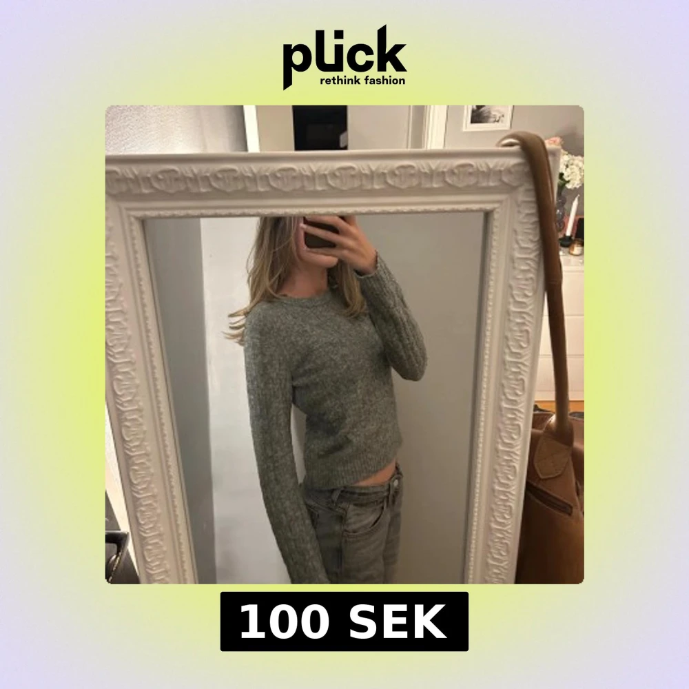 Säljer en grå stickad tröja med rund hals och ribbad kant vid ärmslut och nederkant. Tröjan har lång ärm och är lite croppad i modellen, perfekt för dig som gillar en chill och enkel stil. Mjuk och skön, passar till jeans eller kjol.
