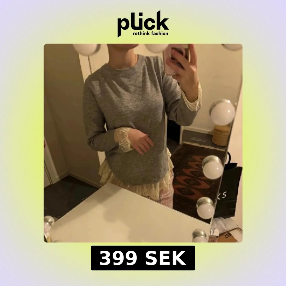 Superfin grå stickad tröja med lång ärm och snygga spetsdetaljer vid ärmslut och nederkant. Baksidan har en öppen rygg med v-ringning och en söt rosett i nacken. Perfekt för dig som gillar romantiska och unika detaljer. Vintage❤️
