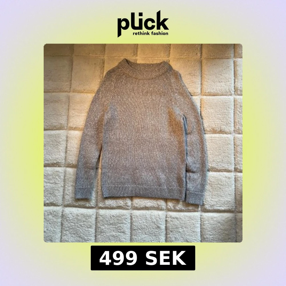 Säljer en mysig grå stickad tröja med rund hals och långa ärmar. Perfekt för kyliga dagar. Tröjan är tillverkad av en blandning av material som ger både värme och komfort. Passar bra till våren. storlek M passar även L
