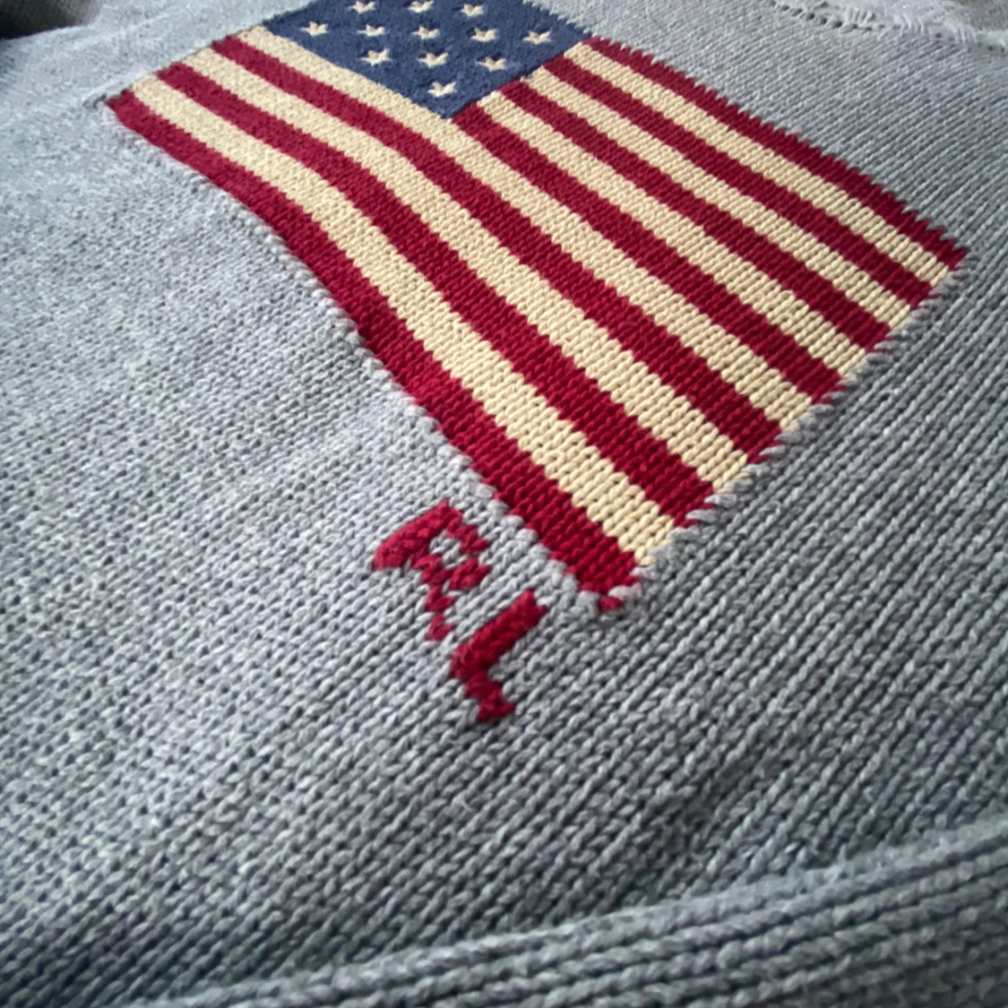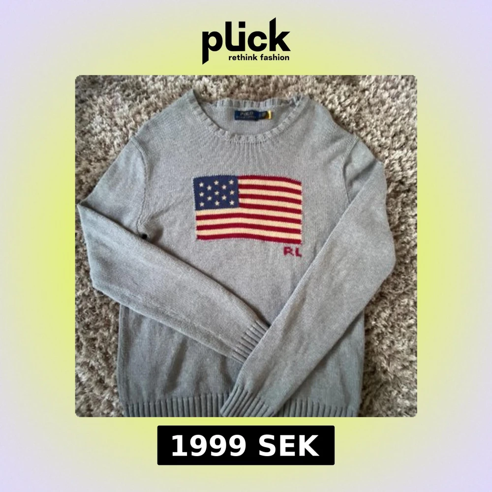Säljer en grå stickad tröja från Polo Ralph Lauren med amerikansk flagga i blått, rött och vitt på bröstet samt RL-broderi. Tröjan har rund hals och långa ärmar med ribbade muddar. Det står S på tröjan men sitter som M. Perfekt för dig som gillar klassisk och cool stil men även en avslappnad look.Har du några funderingar så är det bara att skriva👌