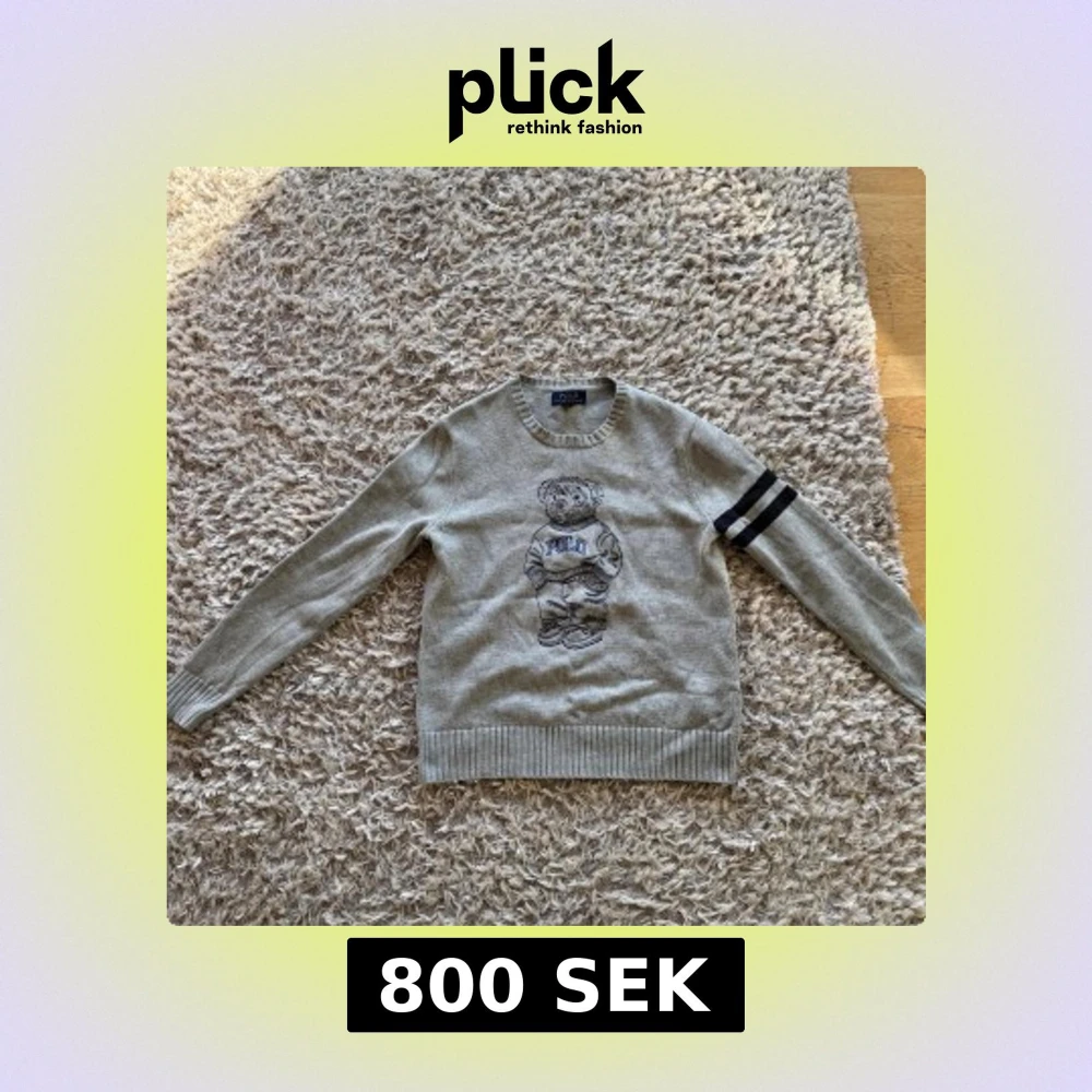 STORLEK L 14-16 år men passar som xs stickad tröja från Polo Ralph Lauren med ikonisk björn-brodyr på bröstet och två svarta ränder på ena ärmen. Rund halsringning och ribbade muddar. Perfekt för dig som vill ha en klassisk men ändå lekfull look.