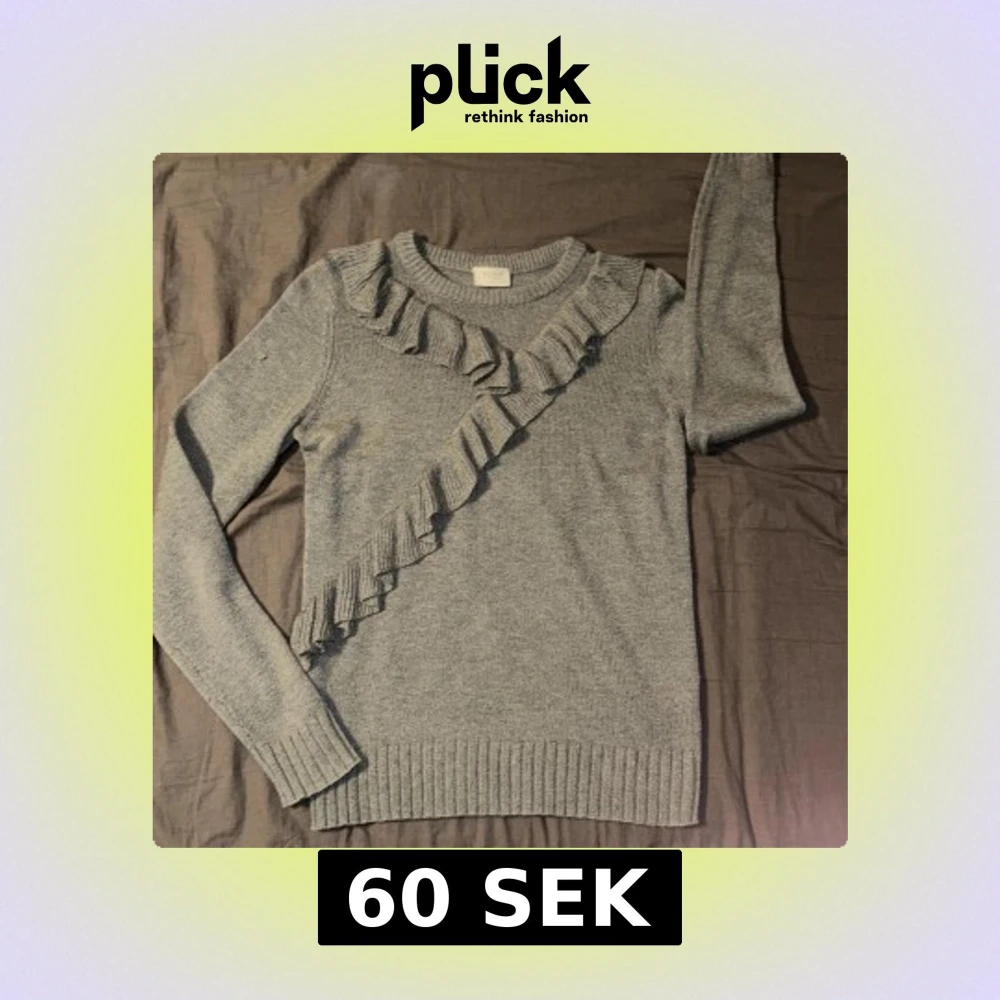 Grå stickad tröja från Vila i storlek M. Tröjan har långa ärmar och är dekorerad med en snygg volangdetalj som går diagonalt över framsidan och längs halsringningen. Fint skick utöver en tråd som börjat gå upp vid ena axeln (se bilder). Vill påstå att den är liten i storleken men passar mig fint som annars bör storleken xs-s 🤗