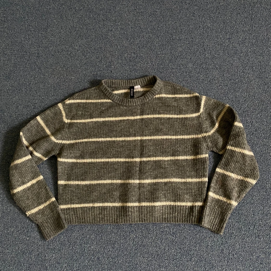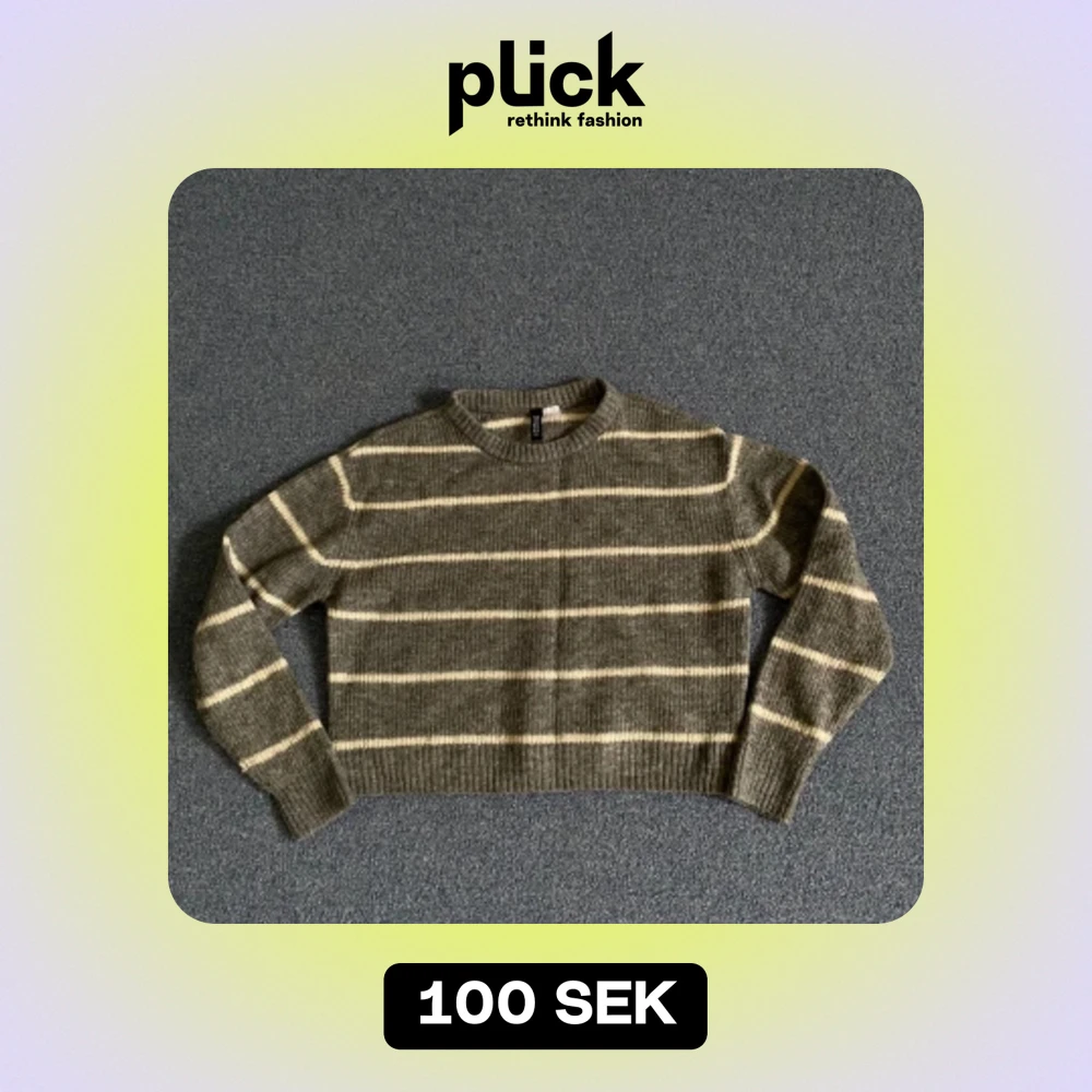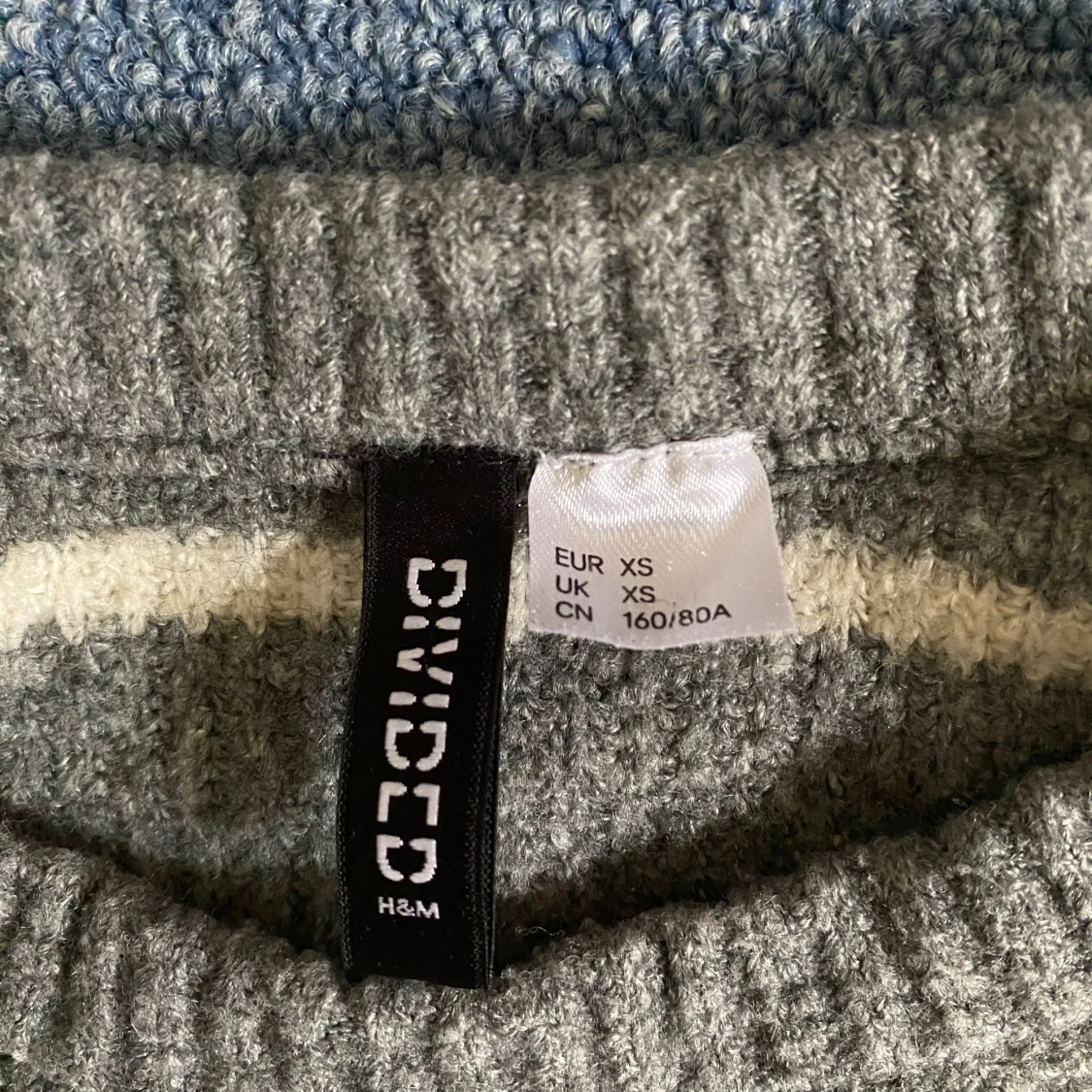 Fin grå stickad tröja med vita ränder